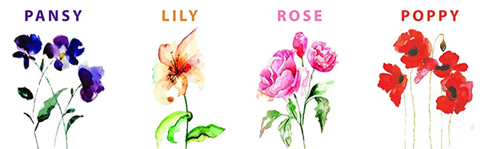 - A TOUCH OF CLASS: Featuring fine painterly details and shimmering gold foil border embellishments, these watercolor floral greeting cards are a lovely way to reach out to friends, family, and all the people you care about. This artistic boxed set includes 4 elegantly rendered flower designs: a poppy, lily, rose, and pansy. Send cards from the heart, send cards from Graphique