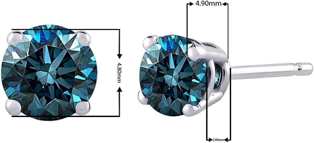 Blue - I1 Round Brilliant Cut Diamond Earring Studs in 14K Gold