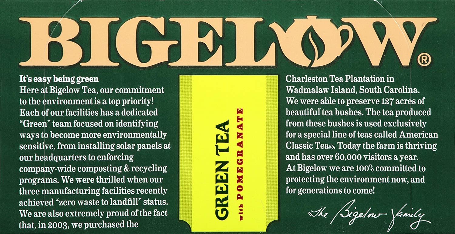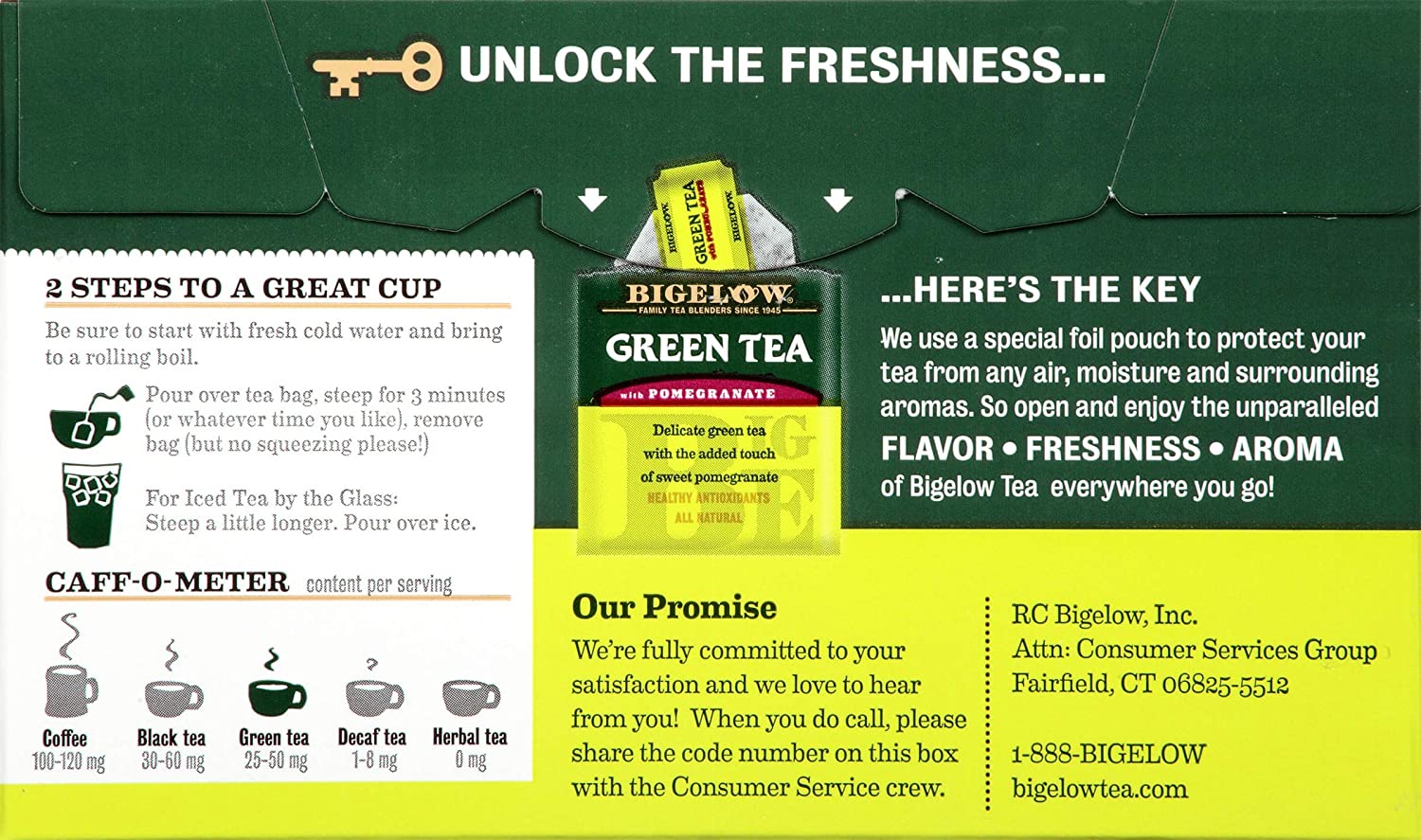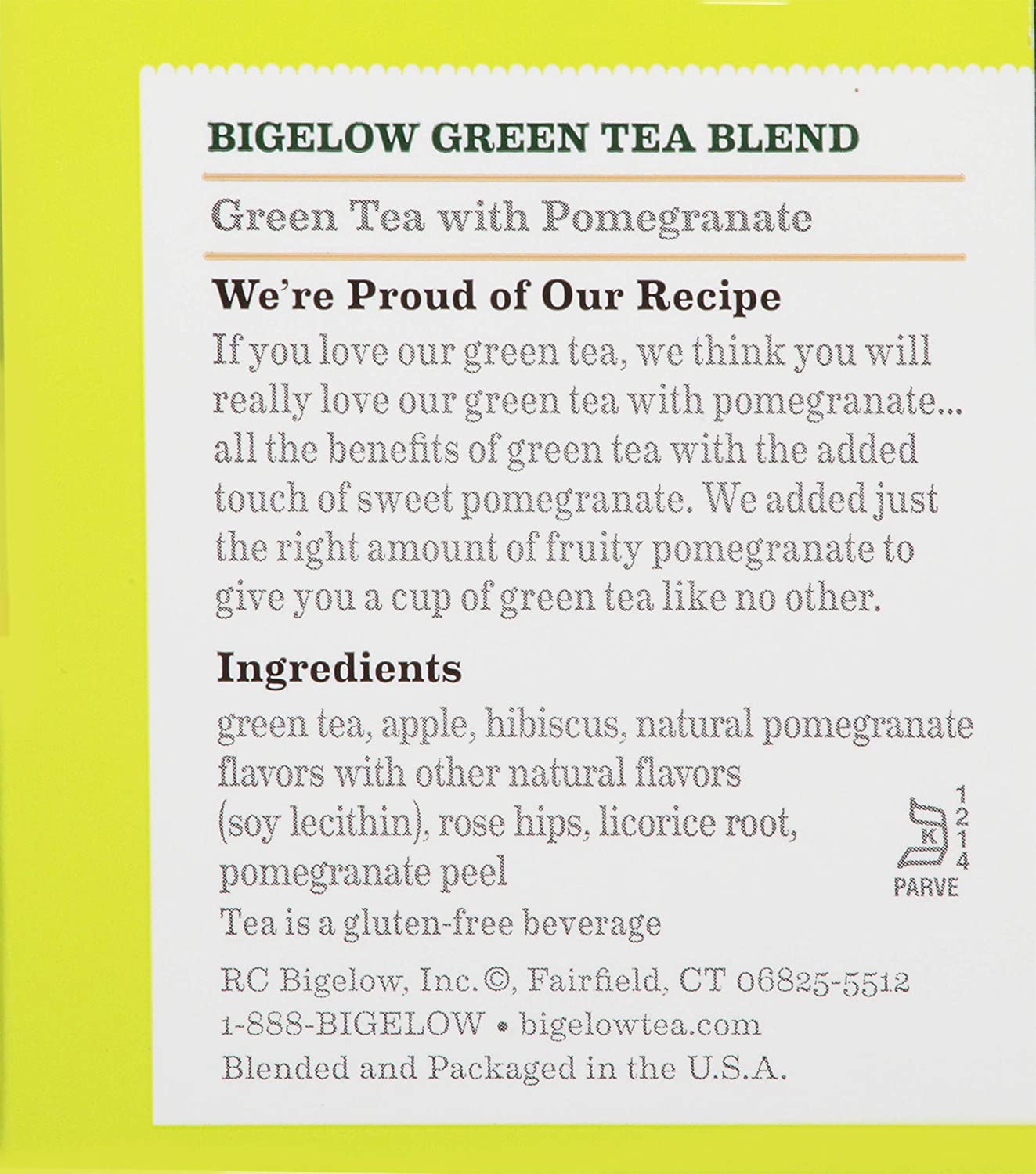 Bigelow Tea Green Tea with Pomegranate, Caffeinated, 20 Count (Pack of 6), 120 Total Tea Bags