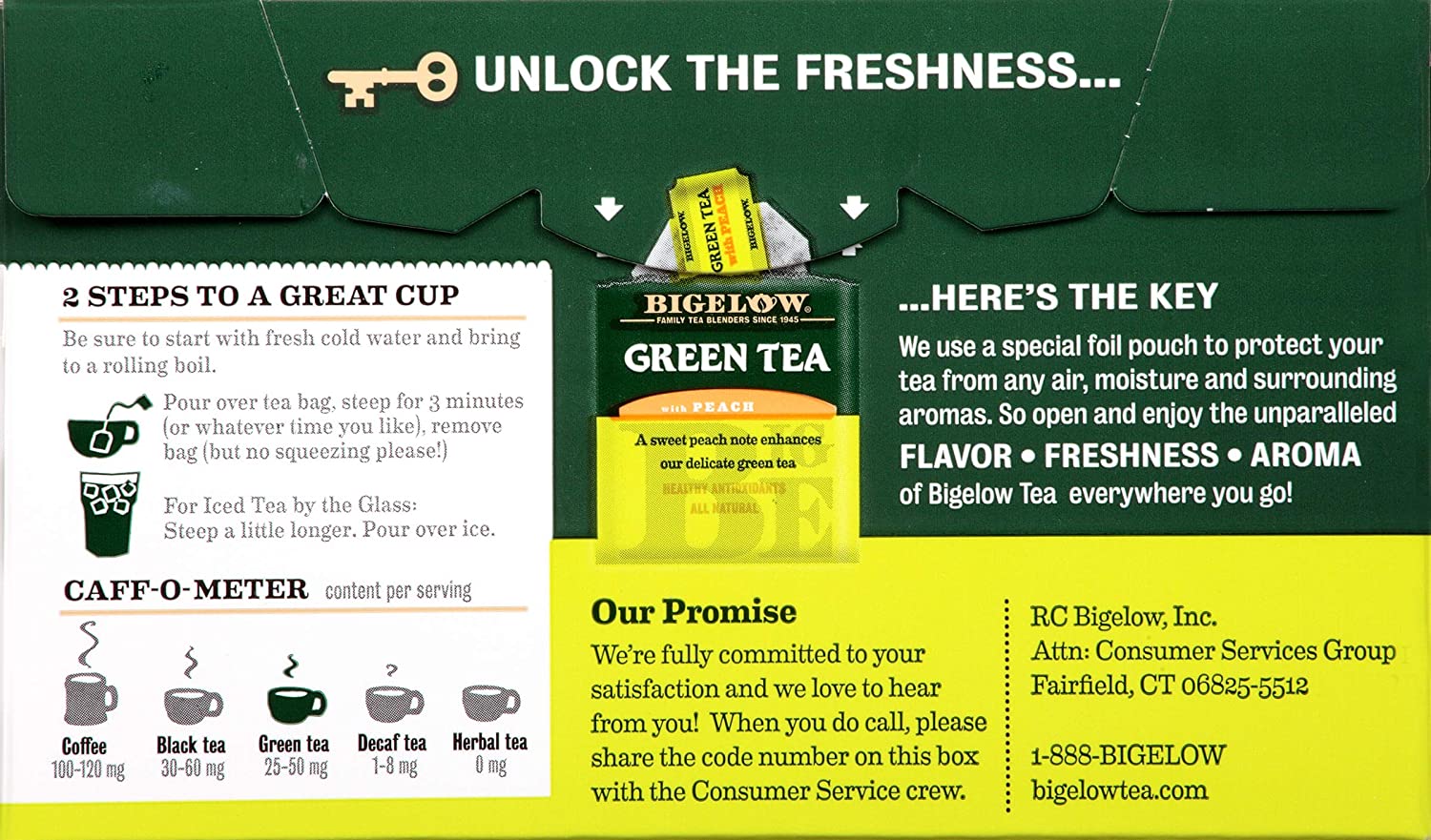• Individually Wrapped: Bigelow Tea always come individually wrapped in foil pouches for peak flavor, freshness and aroma to enjoy everywhere you go; Gluten-free, calorie-free, and Kosher Certified