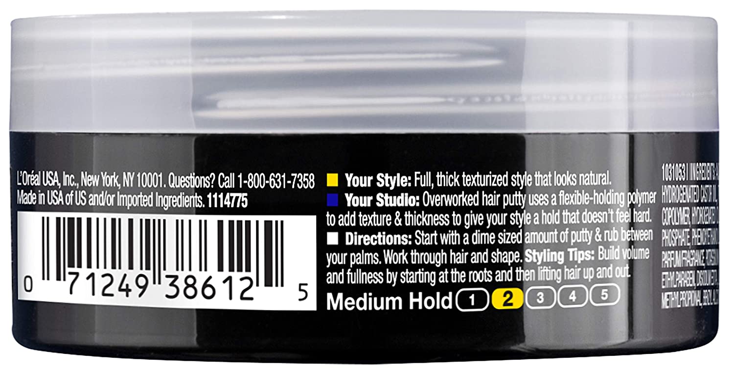 • Natural Looking- L'Oreal Paris Studio Line Overworked Hair Putty gives you a full, thick texturized style that looks natural