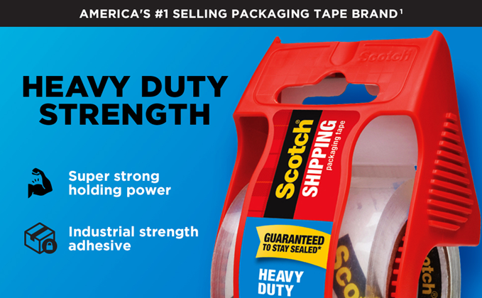 Scotch Heavy Duty Packaging Tape, 1.88" x 54.6 yd, Designed for Packing, Shipping and Mailing, Guaranteed to Stay Sealed, 3" Core, Clear, 18 Rolls (3850-18CP)