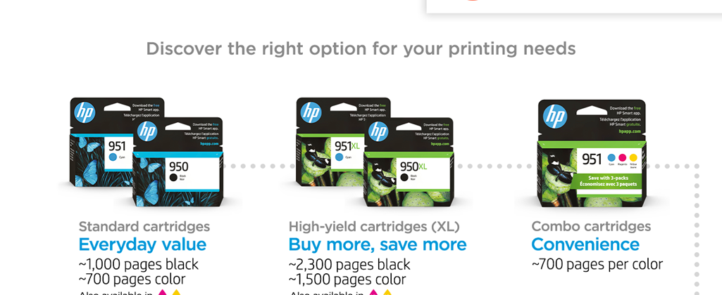 • Get ink your way: buy Original HP Ink Cartridges or save up to 50% and never run out with HP Instant Ink, the Smart Ink Subscription