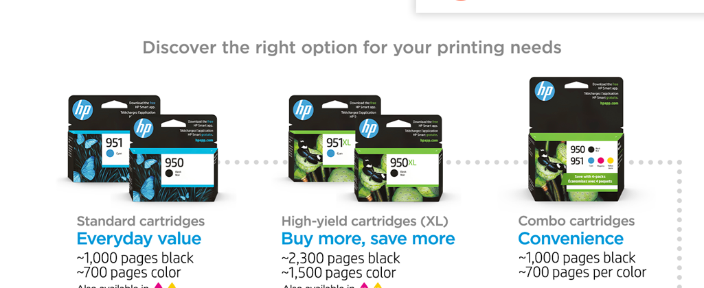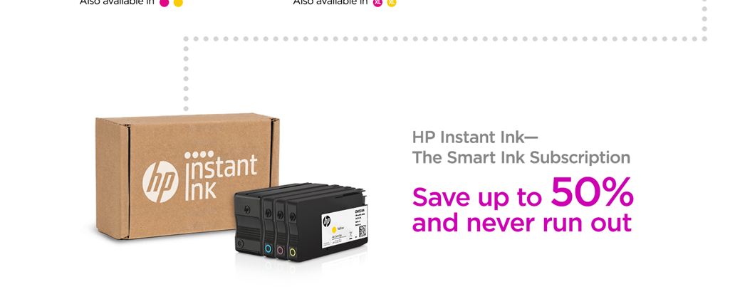 • Get ink your way: buy Original HP Ink Cartridges or save up to 50% and never run out with HP Instant Ink, the Smart Ink Subscription