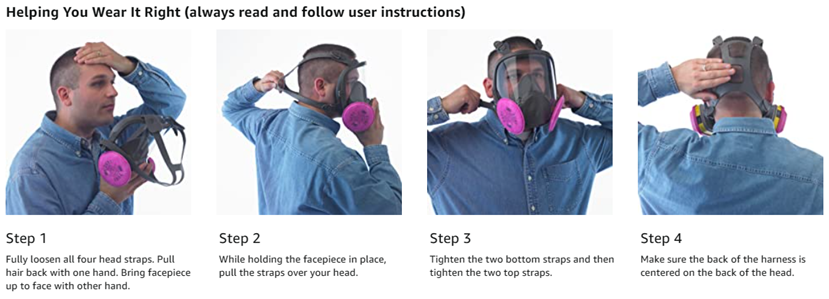 • Combine with 3M particulate filters or chemical cartridges to help provide respiratory protection against particulates (dust, fumes, mold, etc) and gases and vapors (paint, acid, chemicals, etc.)