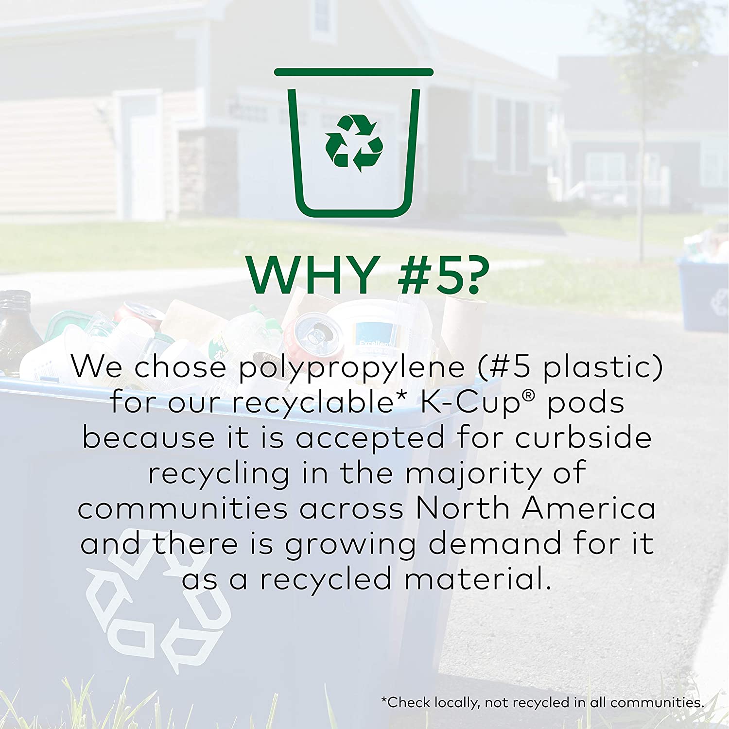 • RECYCLABLE K-CUP PODS: Simple. Delicious. And Recyclable. Enjoy the same great-tasting coffee you know and love, and when you’re done just peel, empty and recycle. Check locally, not recycled in all communities. Packaging may vary.