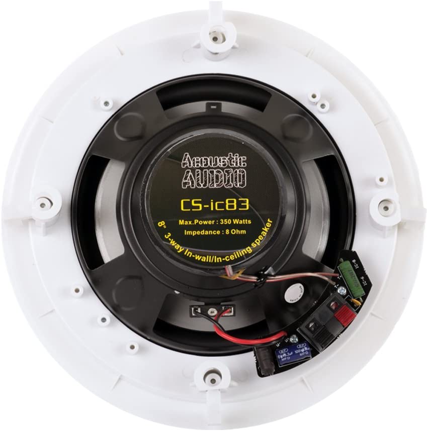 WHAT'S IN THE BOX - 5 Acoustic Audio by Goldwood CS-IC83 speakers, removeable grills, cut-out templates, instruction manual. Use for home theater surround sound, whole house audio systems, business or retail installations