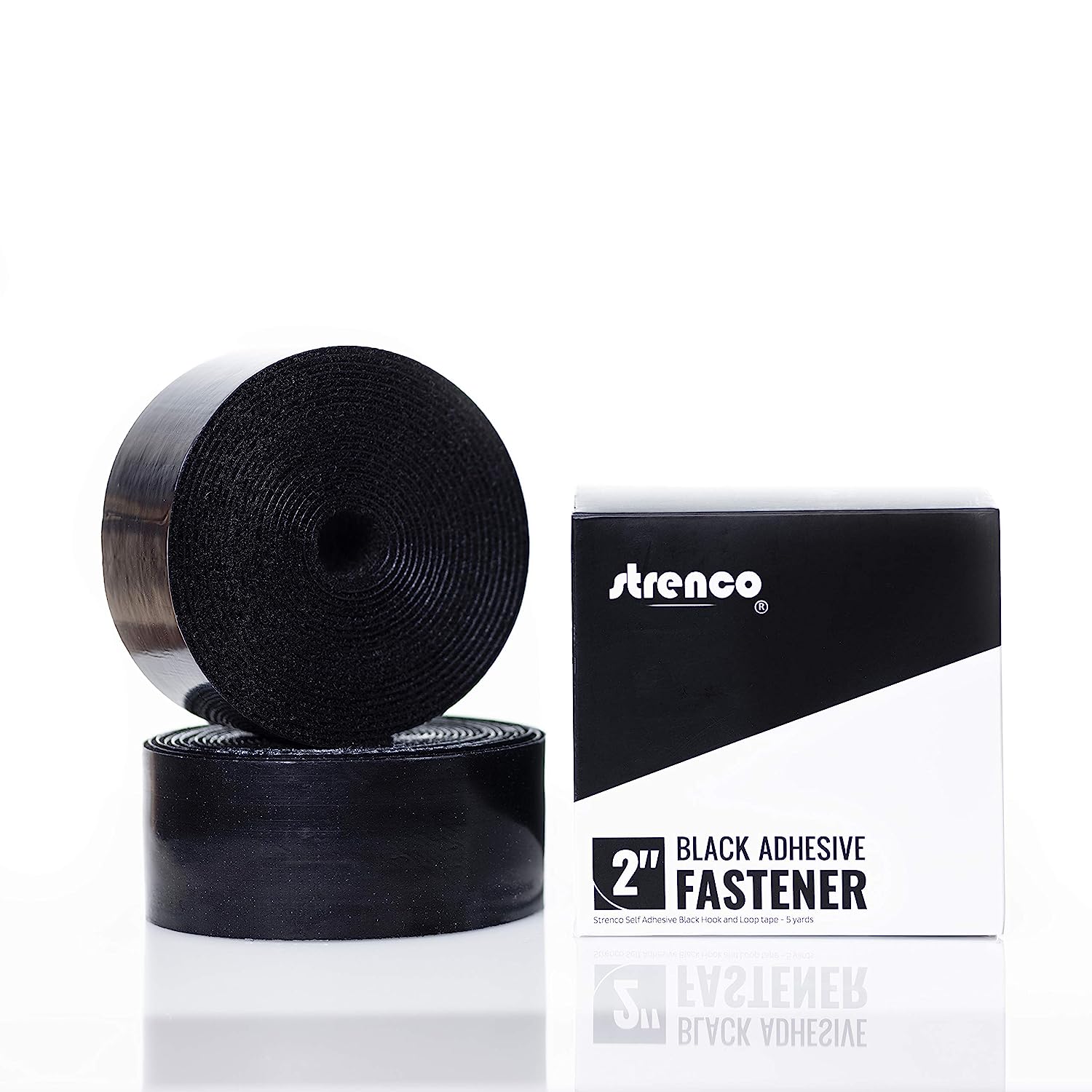 Strenco 2 Inch Hook and Loop Strips with Adhesive - 5 Yards - Heavy Duty Tape - Black Sticky Back Fastener