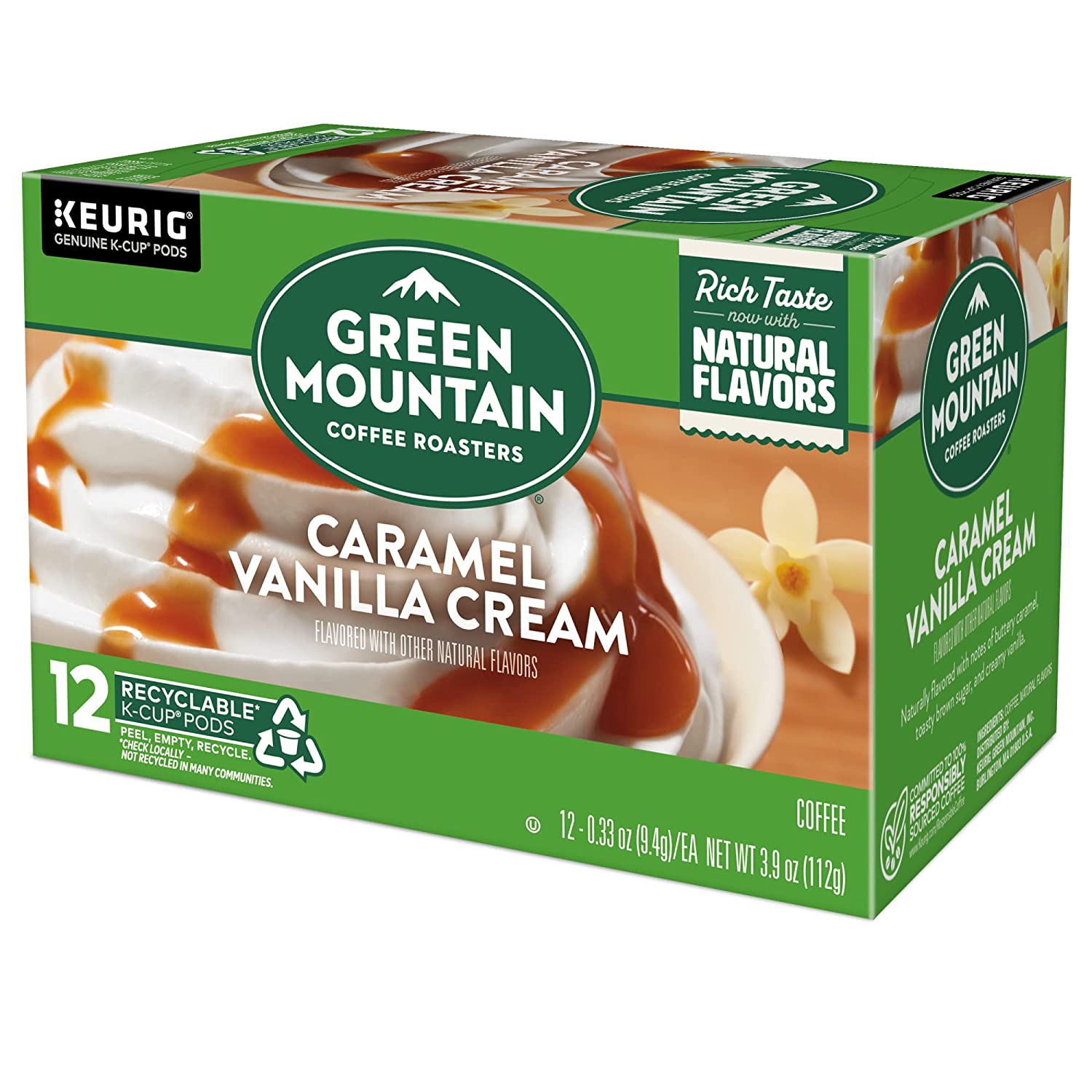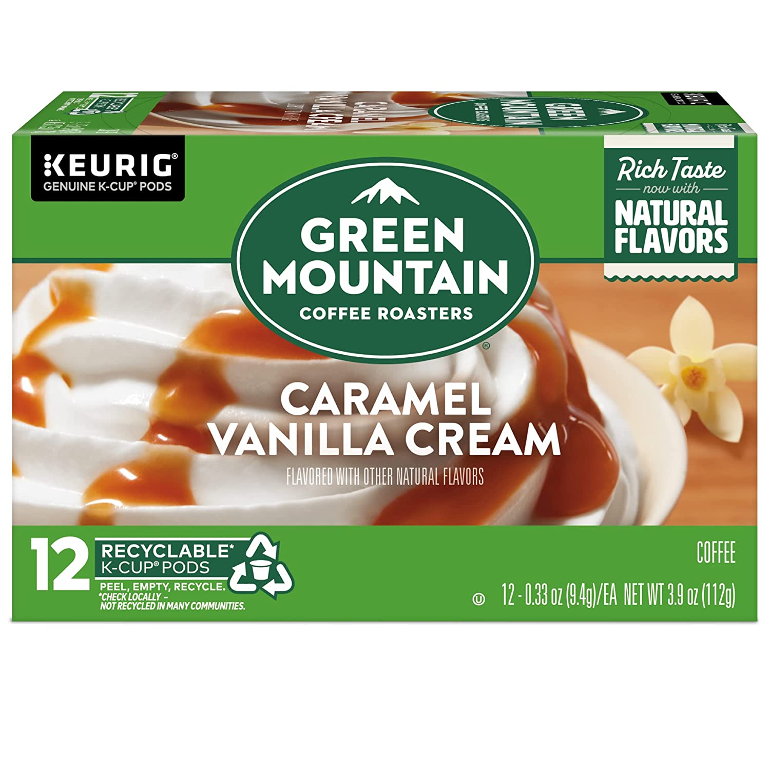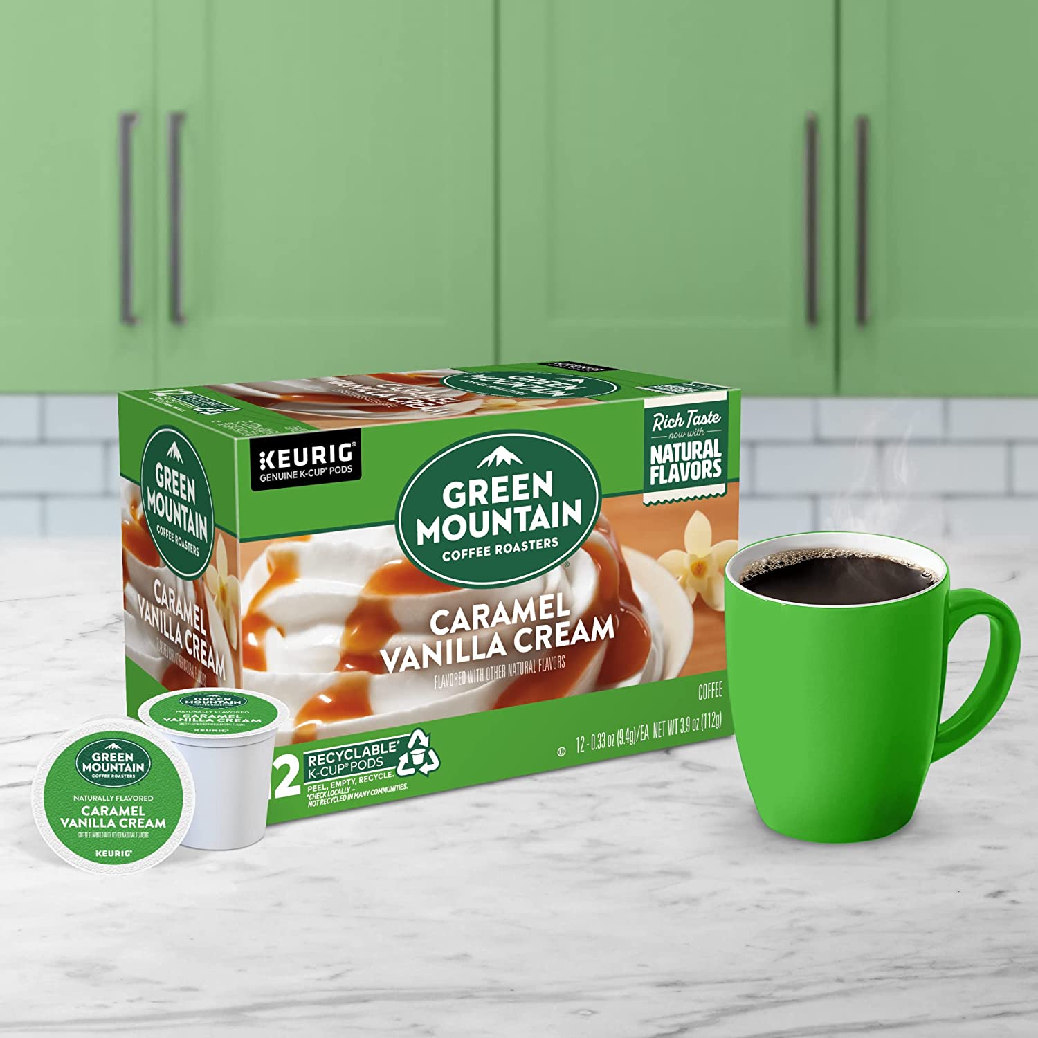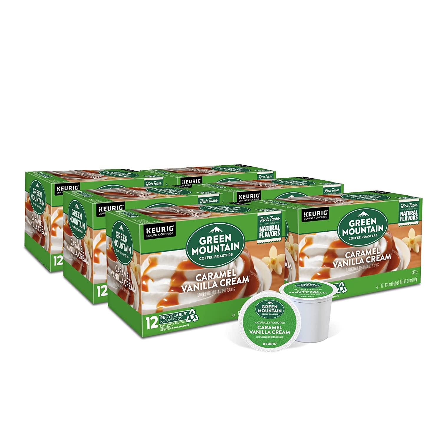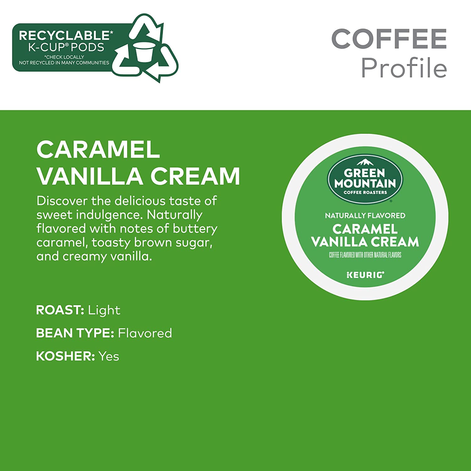Green Mountain Coffee Roasters Caramel Vanilla Cream, Single-Serve Keurig K-Cup Pods, Flavored Light Roast Coffee, 72 Count