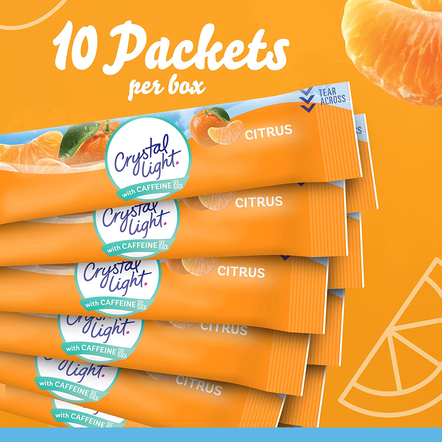 Ten 0.09 oz packets of Crystal Light Naturally Flavored Citrus On-The-Go Powdered Drink Mix with Caffeine