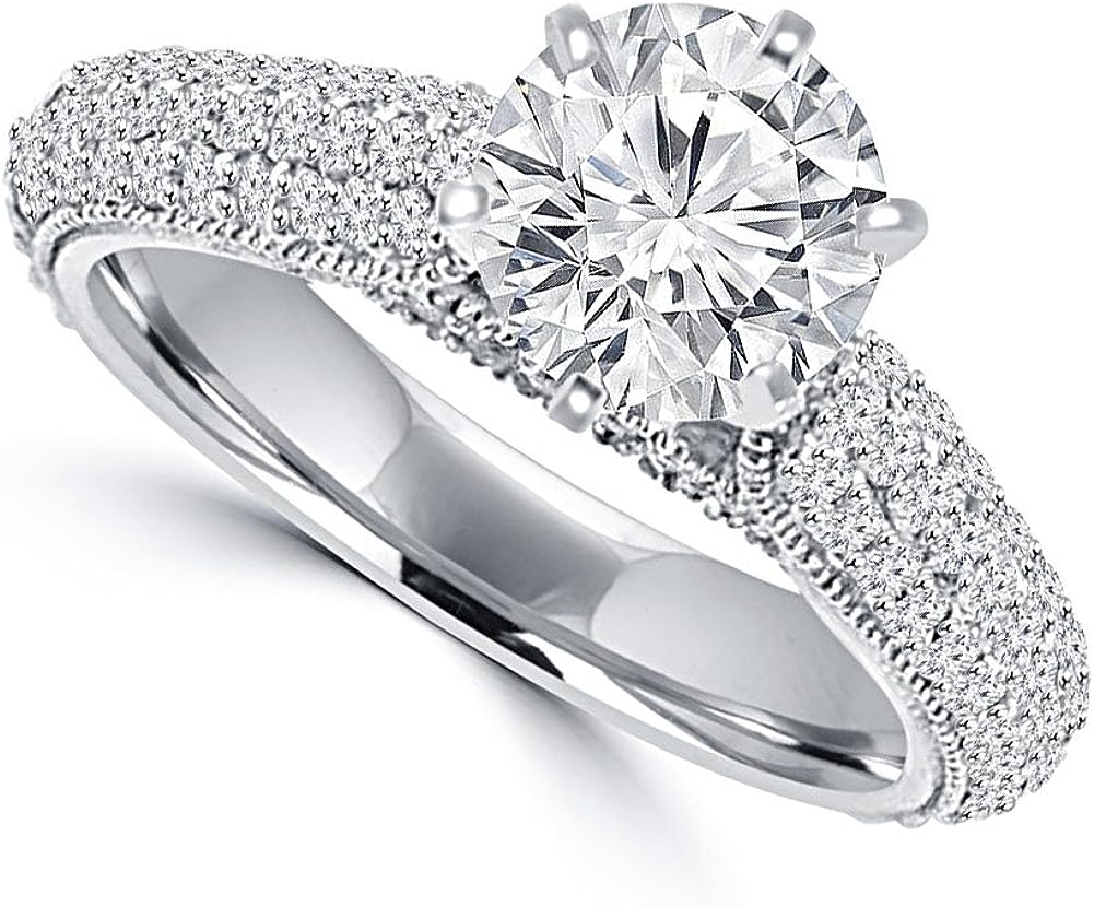 Madina Jewelry 2.00 ct Ladies Round Cut Diamond Engagement Ring in Pave Set in Platinum
