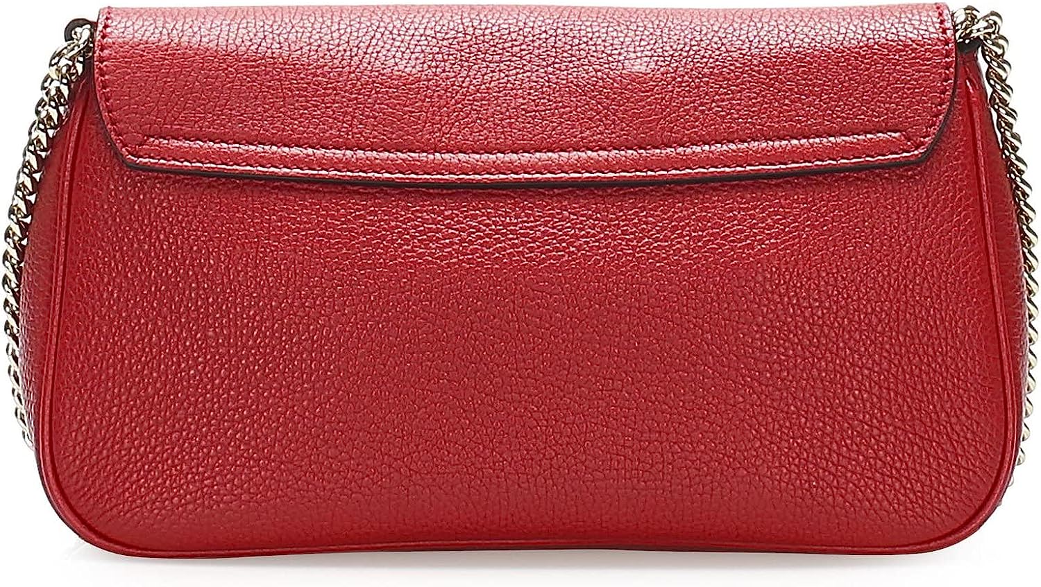 Gucci Soho Interlocking GG Red Leather Chain Flap Shoulder Bag Handbag Italy New