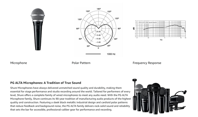 • Cardioid polar pattern picks up audio from the source while rejecting unwanted noise