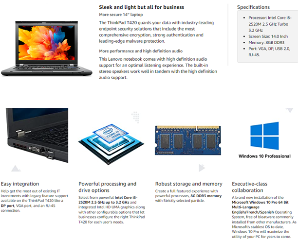 Lenovo Thinkpad T420 - Intel Core i5 2520M 8GB 320GB Windows 10 Professional (Renewed)