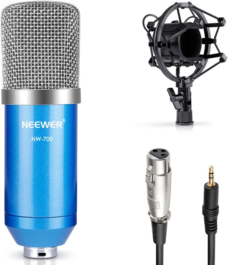 Neewer NW-700 Professional Studio Broadcasting & Recording Condenser Microphone (1)NW-700 Condenser Microphone (1)Metal Microphone Shock Mount (1)Ball-type Anti-wind Foam Cap (1)Microphone Audio C
