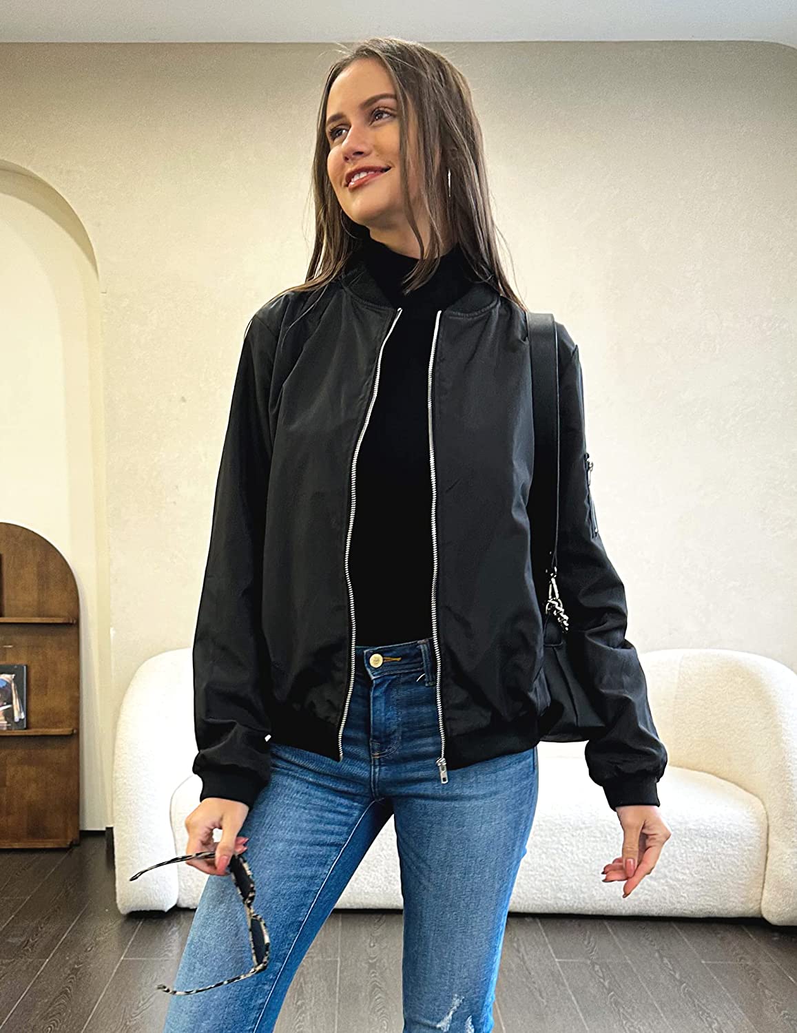 Zeagoo Women's Bomber Jacket Casual Coat Zip Up Outerwear Windbreaker with Pockets S-XXL