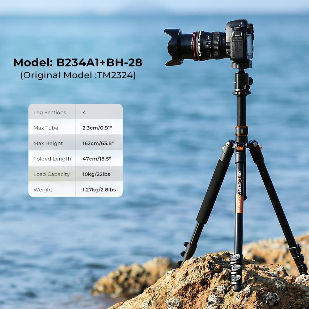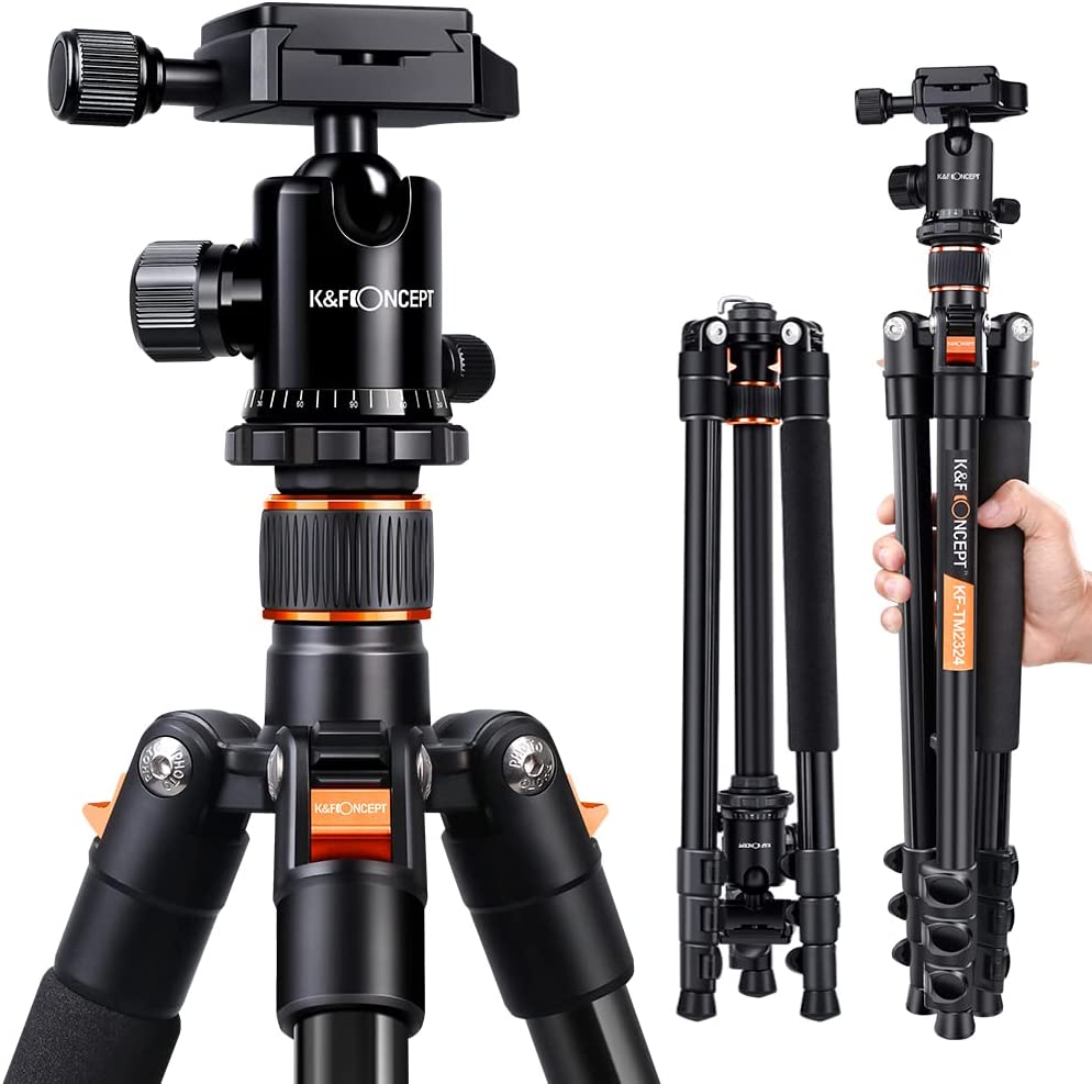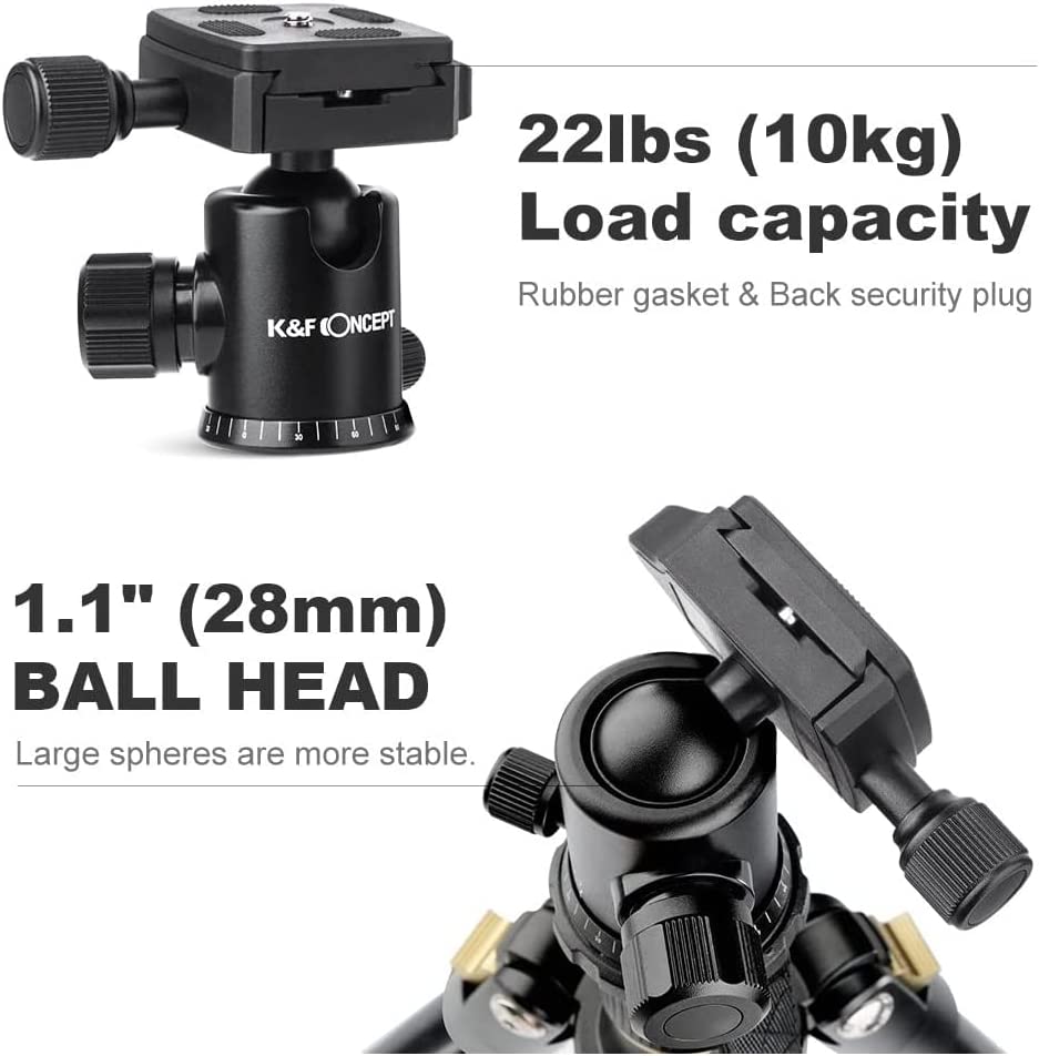 K&F Concept 64''/162cm DSLR Tripod,Lightweight and Compact Aluminum Camera Tripod with 360 Panorama Ball Head Quick Release Plate for Travel and Work B234A1+BH-28 (TM2324)