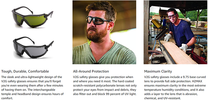 Pyramex V2G Safety Glasses with Adjustable Strap
