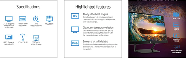 HP Pavilion 22cwa 21.5-Inch Full HD 1080p IPS LED Monitor, Tilt, VGA and HDMI (T4Q59AA) - Black