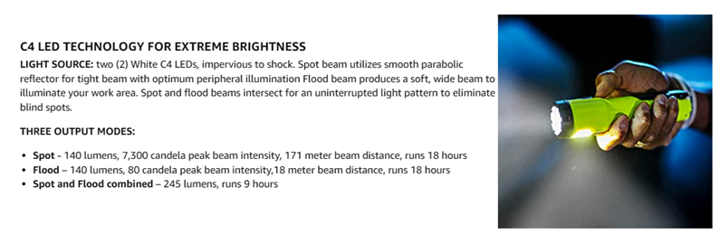 | Special Features | Mountable, Adjustable Light Modes, Non Slip Grip, Impact Resistant |