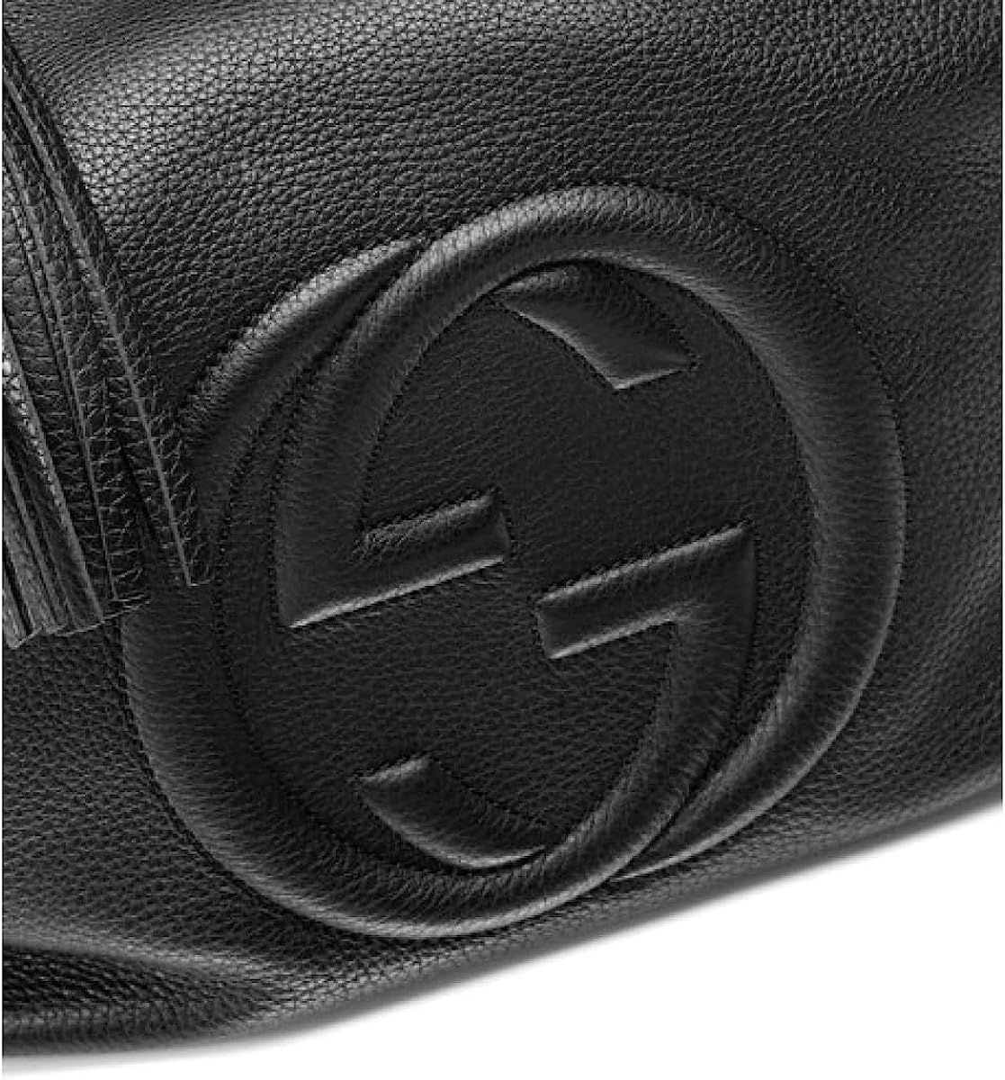 This black Gucci bag exudes luxury with its beautiful leather and gold-toned hardware. The famous interlocking GG logo is displayed proudly on the front. With a zipper pocket and two open pockets befitting of a phone, you'll have space to organize what you need to bring with you.