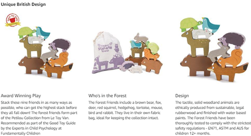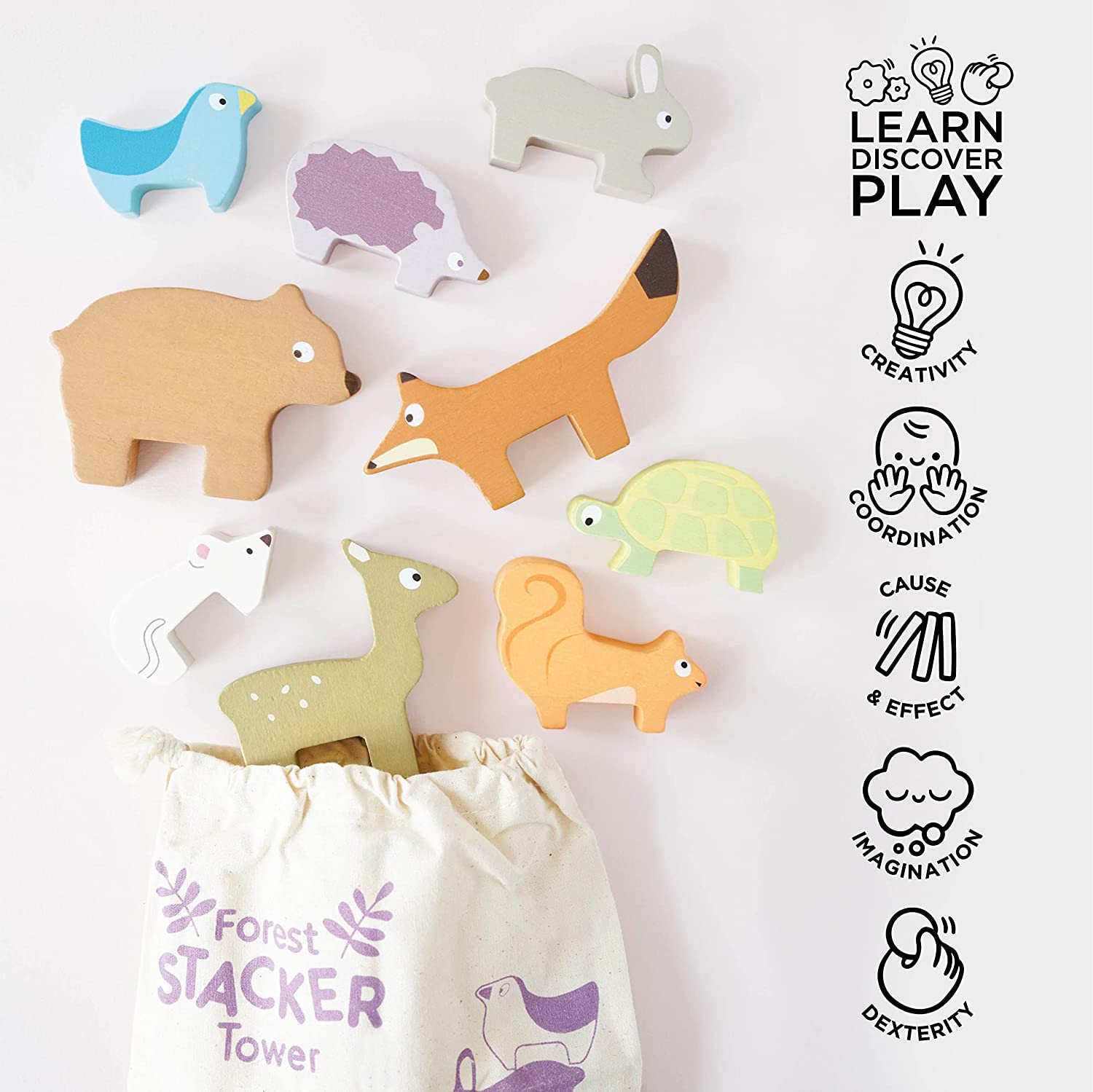 Kids love the Wooden Petilou Forest Stacker & Bag Educational Balancing Activity Toy from Le Toy Van!Our toys are designed to play to developing senses and are packed with layers of discovery for young, growing imaginations. The safety of your child is our number one priority. We rigorously test and regularly exceed toy safety standards. We only ever use safe, non-toxic paint and work hard – from design to manufacture – to ensure kid safe edges on our toys, for safe play every day.Features:Hand painted, Suitable for toddlers and older children 12 months+, Made from durable, sustainable rubberwood, this allows long lasting fun, whilst caring for our planet. Contains: 9 wooden animals, Drawstring bag. Le Toy Van has been proudly making imaginative wooden toys designed in London since 1955. Including local kids in their toy designing process and working with trusted suppliers for over 25 years, supporting them in ethical work practices. All Le Toy Van multi-awarding winning toys are ethically made from sustainable, tactile Rubberwood and are uniquely designed and hand-finished.We care for our planet and believe wood is good! We use and replant a by-product of the rubber industry - Rubberwood, which used amongst over woods is recycled into our beautifully crafted toys.