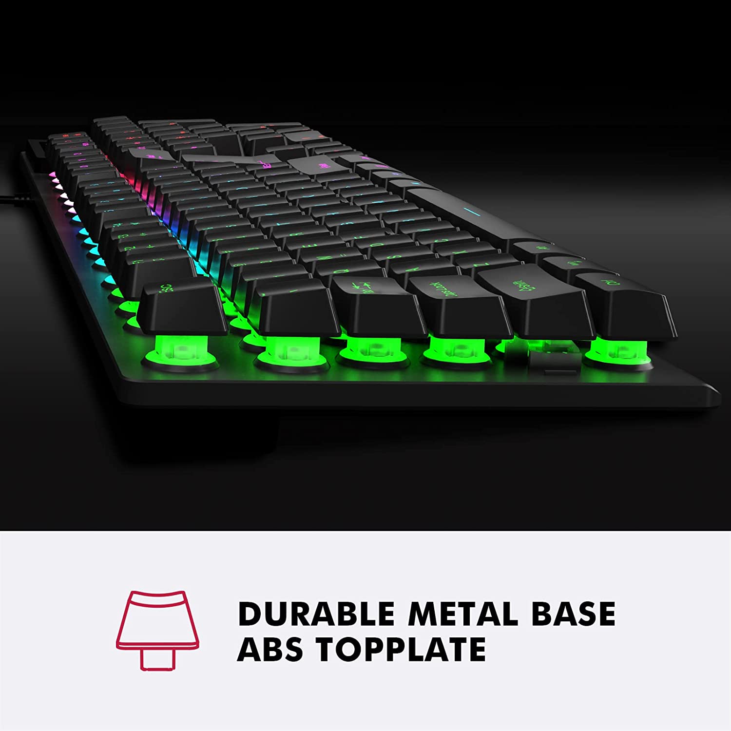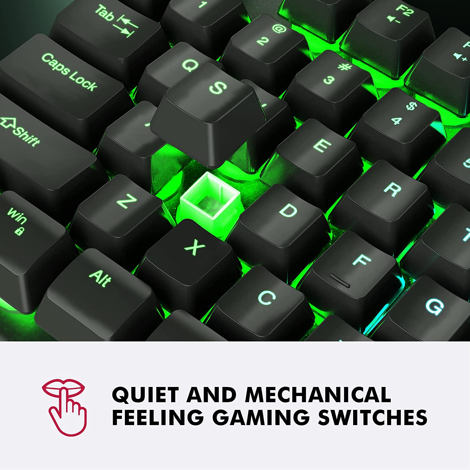 • Durable Full-Sized Gaming Keyboard: Made with highly-resistant ABS plastic and metal base for longevity, and durability. With a mechanical brown switch gaming feeling that delivers precise tactile feedback and responsiveness.