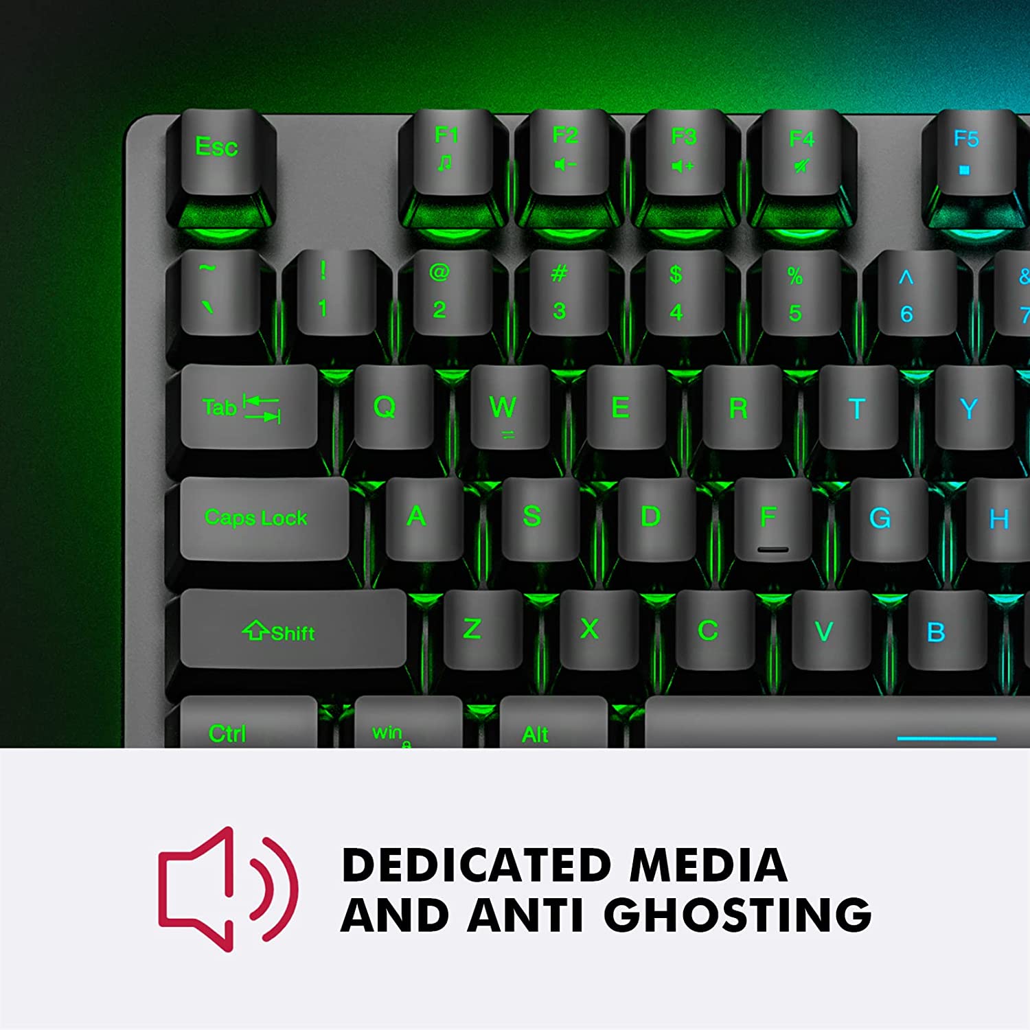 • Dedicated Media Control & Anti Ghosting: It has 26 conflict-free that keep you in control when you press multiple gaming keys simultaneously. 13 dedicated media keys can control your background track without switching out of your game.