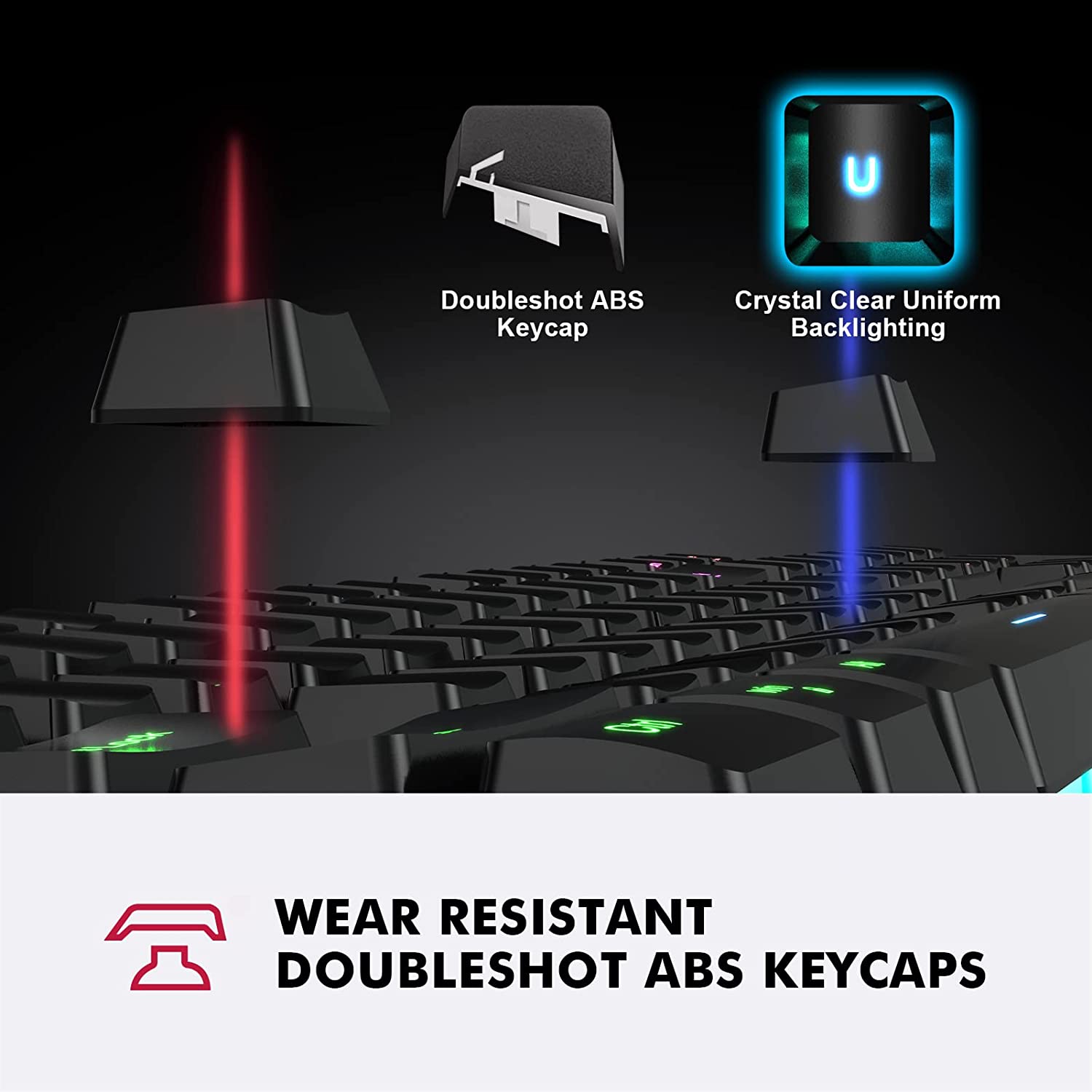 • Wear Resistant Doubleshot ABS Keycaps: The keycaps feature a special coating to protect the keyboard for many years. The ergonomic stair-up keycap design brings maximum comfort keeping your hand in a natural state to minimize hand fatigue.