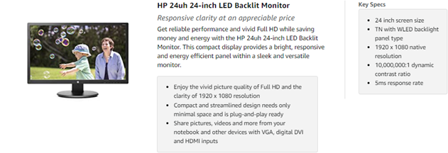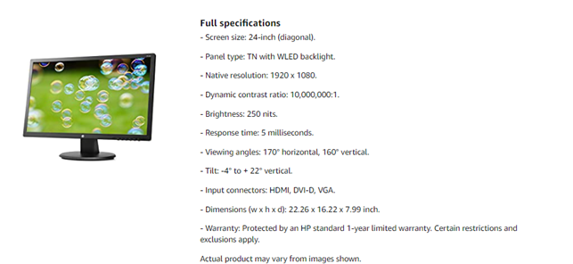 • Affordable and stylish: Ideally priced to use as a primary or secondary monitor for work or play at home. HP monitors are designed as ‘plug and play’ for all OS