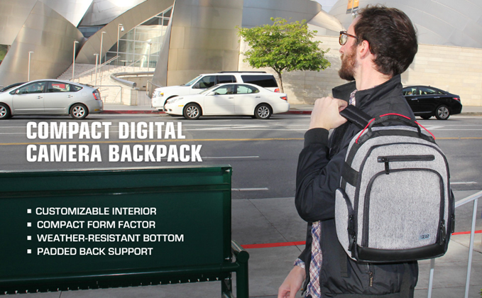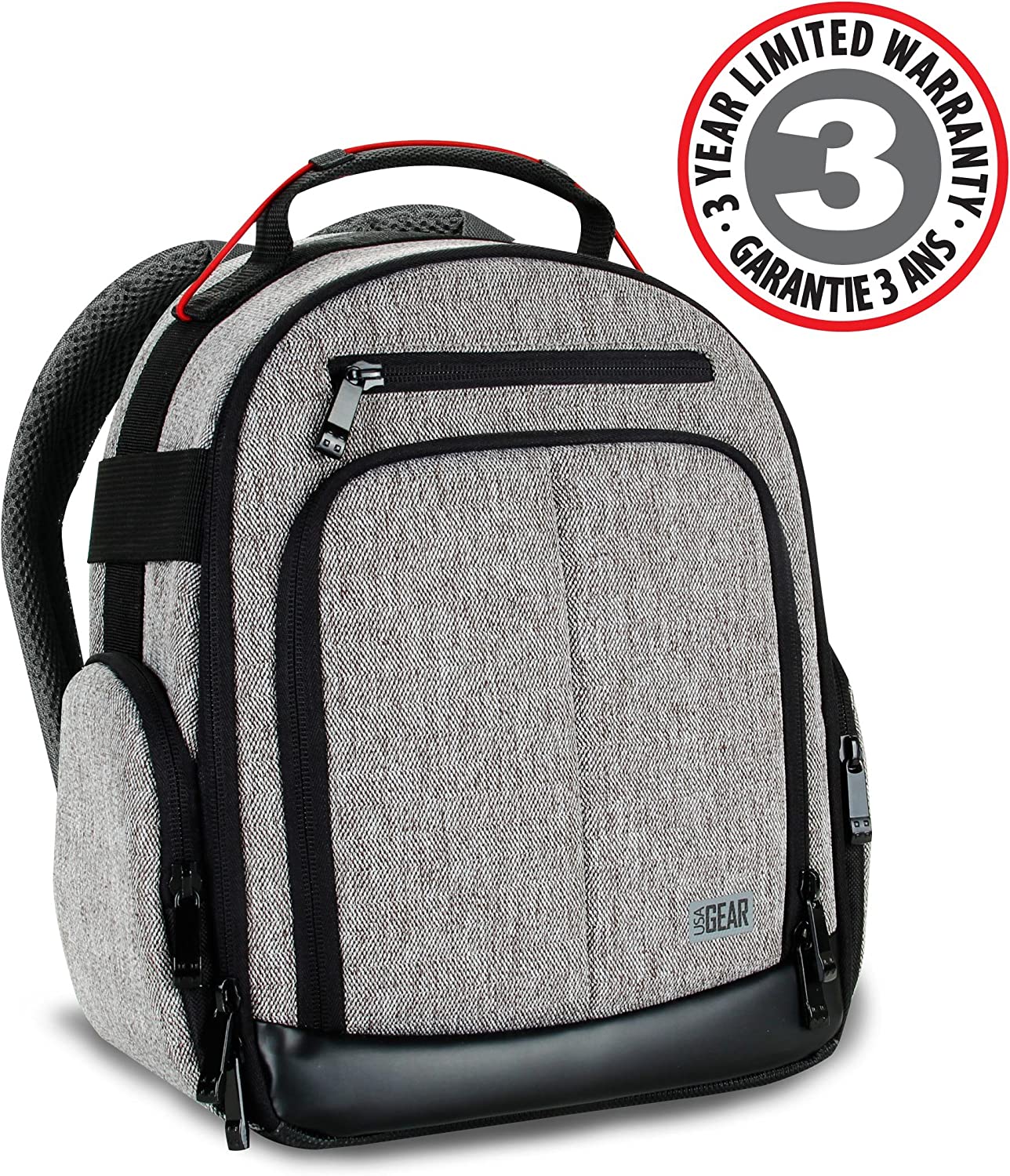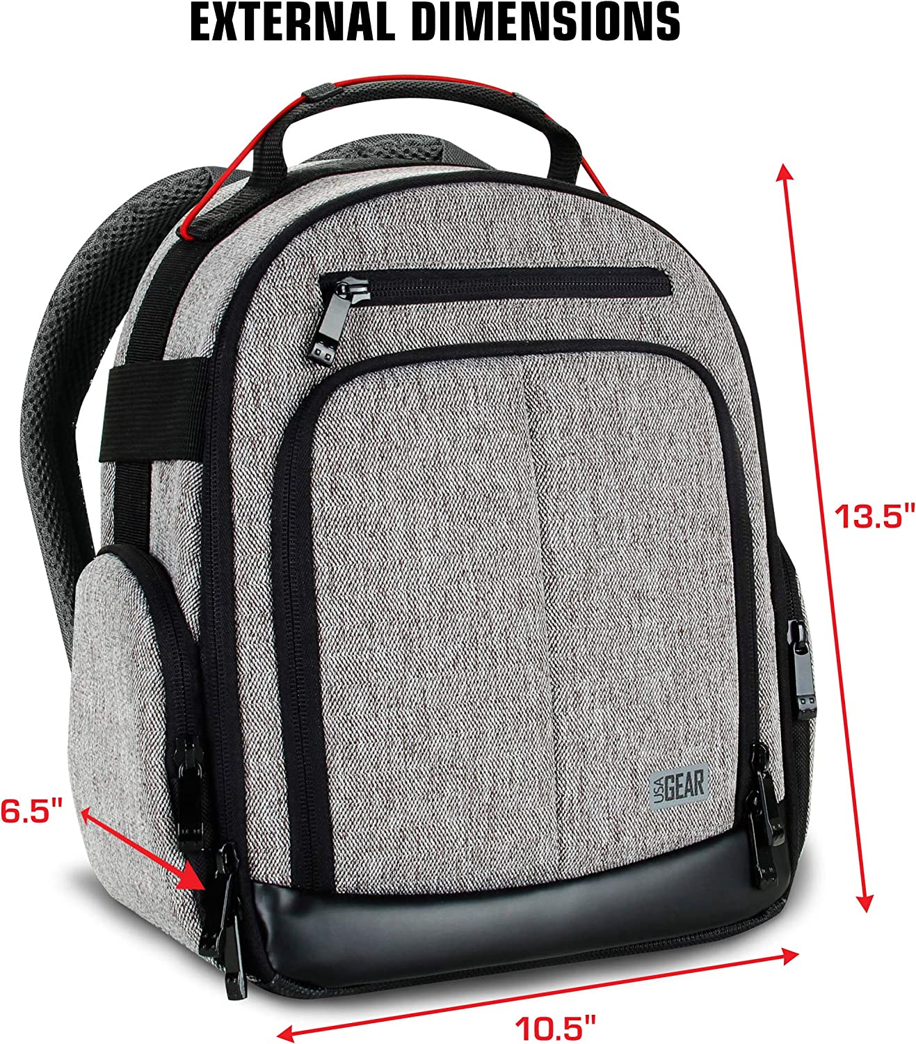 USA GEAR Portable Camera Backpack for DSLR (Gray) with Customizable Accessory Dividers, Weather Resistant Bottom and Comfortable Back Support - Compatible with Canon, Nikon and More