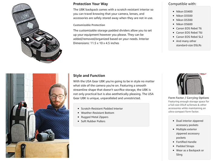• EASY TO CARRY Camera backpack is the perfect size with plenty of room to hold all your gear. Room for a full-size DSLR with lenses & other accessories. Exterior Dimensions: 13.5 x 10.5 x 6.5 inches