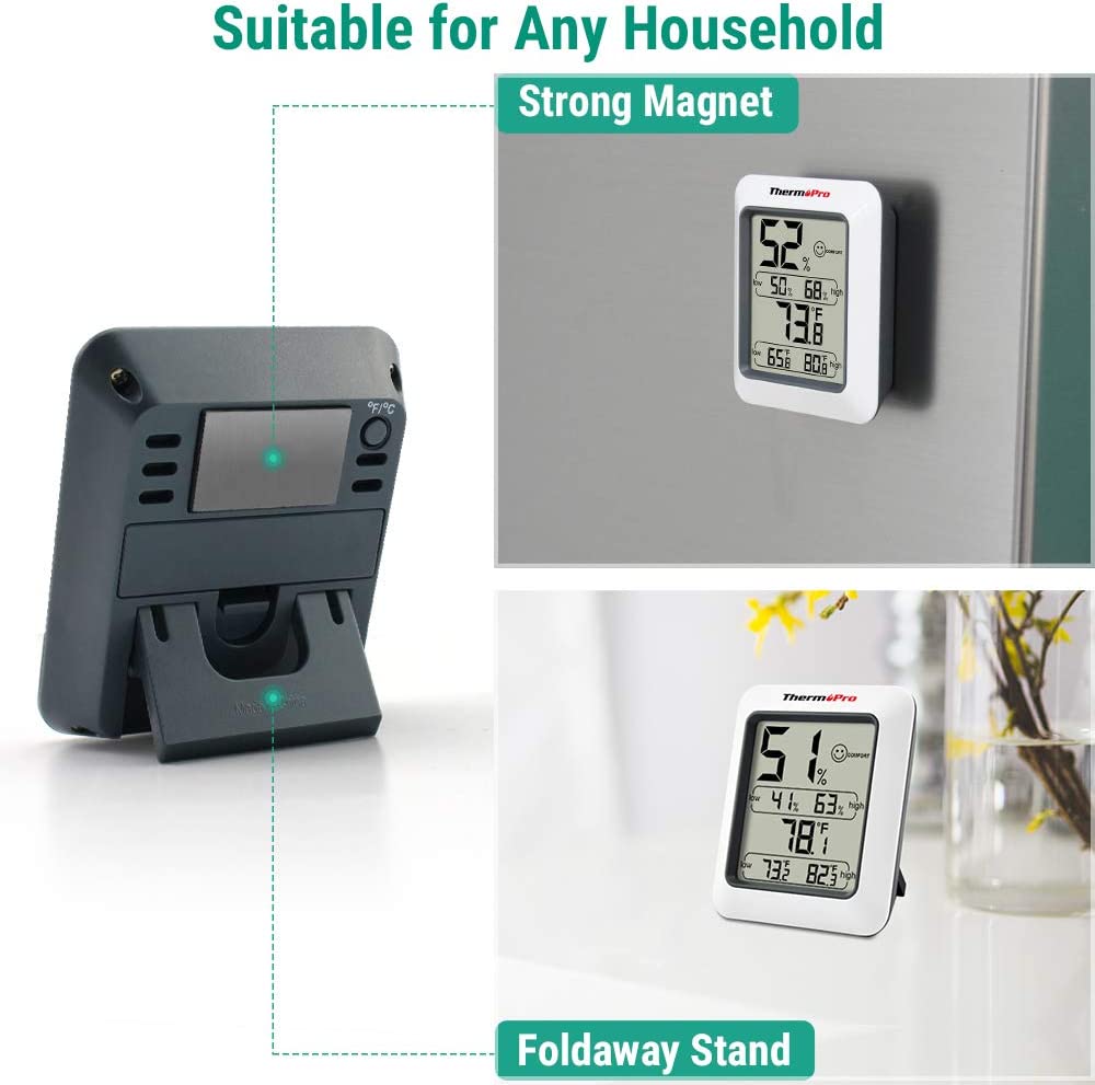 • Healthier Home & Environment: This thermometer hygrometer with temperature and humidity monitor ensures proper indoor humidity that achieves important health benefits for skin and allergen; Can also serve as a refrigerator thermometer, freezer thermometer, reptile thermometer, soil thermometer, humidor hygrometer, cigar hygrometer, and more