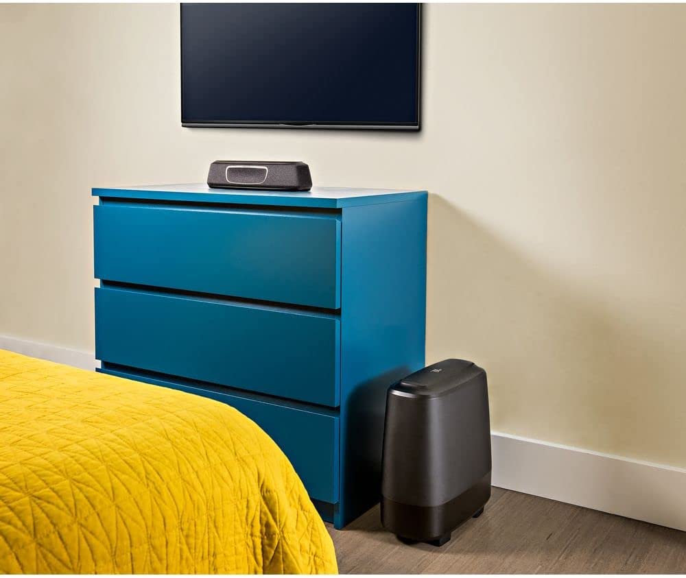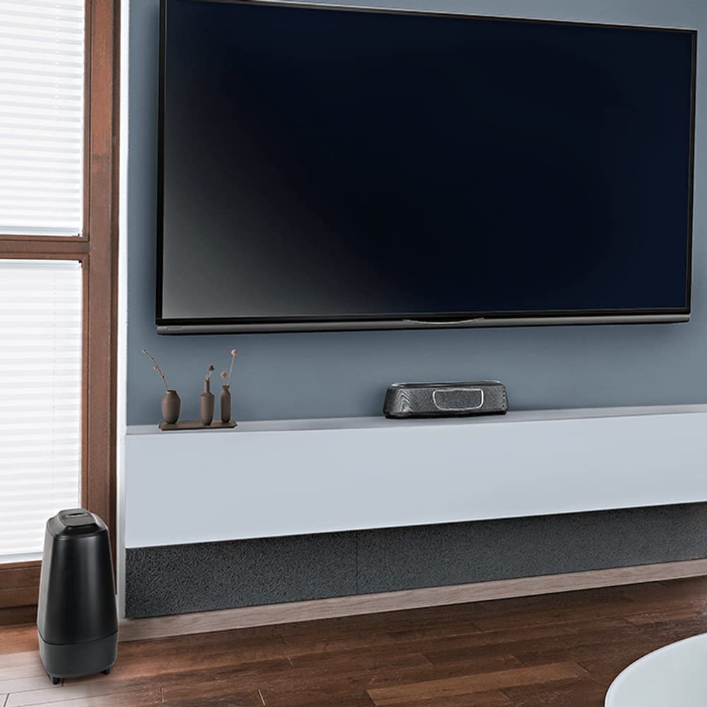 The MagniFi Mini delivers the big, room-filling home theater experience you’d expect from a full-size sound bar in an ultra-compact design. Compatible with most TVs, it’s easy to set up and features Polk’s Voice Adjust and SDA surround sound technologies with 5.1 Dolby Digital decoding, ensuring crystal clear dialogue and immersive surround sound—plus an included wireless subwoofer for deep bass impact you can feel. Convenient to use as it works with any TV, cable box or satellite IR remote control—no need for two remotes. Stream your favorite music through Bluetooth, and Google Home Chromecast for Audio. The one-button Night Mode lowers the bass and increases Voice Adjust delivering clear dialogue all without raising the master volume.