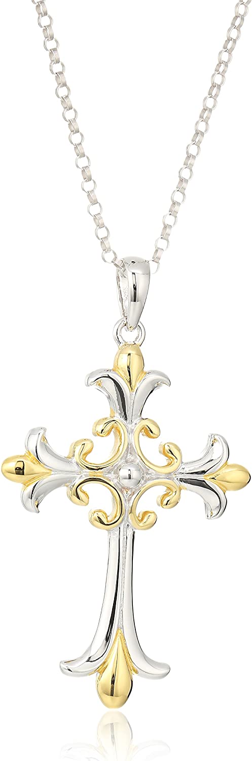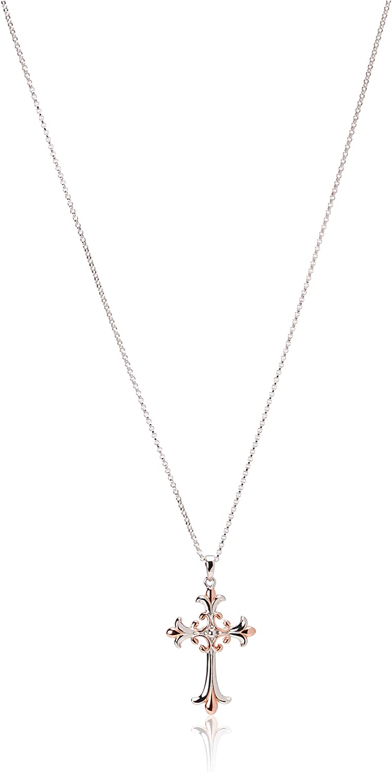ArgosCollection 14k Rose Gold or 18k Yellow Gold Plated Sterling Silver Two Tone Celtic Cross Pendant Necklace, 18"