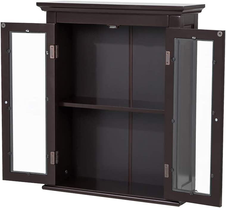 • MODERN DESIGN - The cabinet comes with an espresso finish to provide a modern element to the design. Vintage metal handle knob make it easy to open and close. Crown molding on the top of the unit gives it a grace style that will go with most any decor.