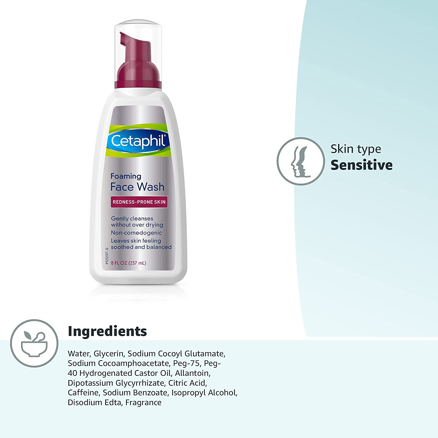 CETAPHIL Redness Relieving Foaming Face Wash For Sensitive Skin , 8 Fl Oz , Gently Cleanses & Calms Sensitive Skin Without Over Drying, (Packaging May Vary)