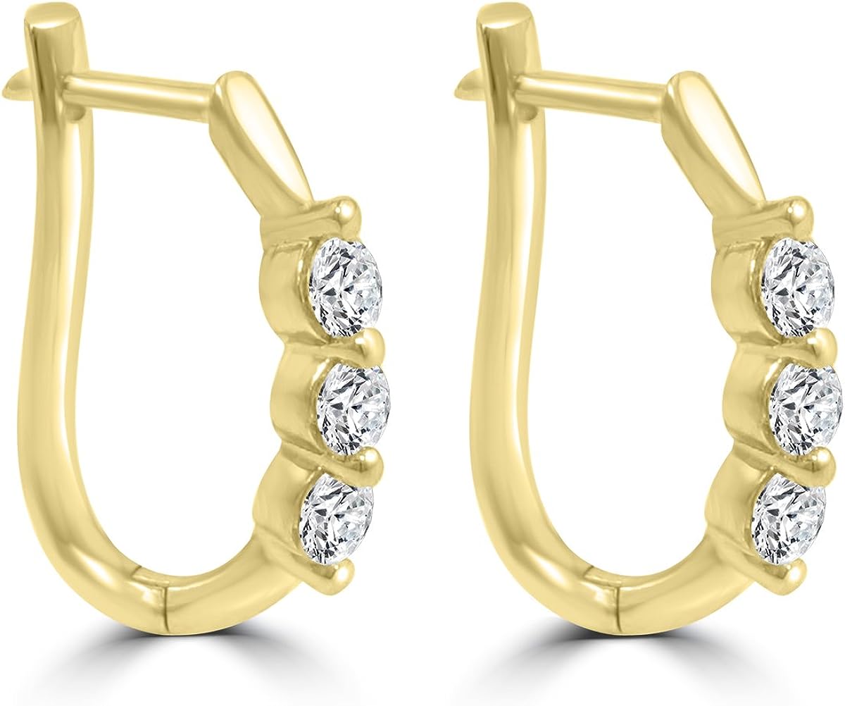 Madina Jewelry 1.10 ct Ladies Round Cut Diamond Hoop Huggie Earrings