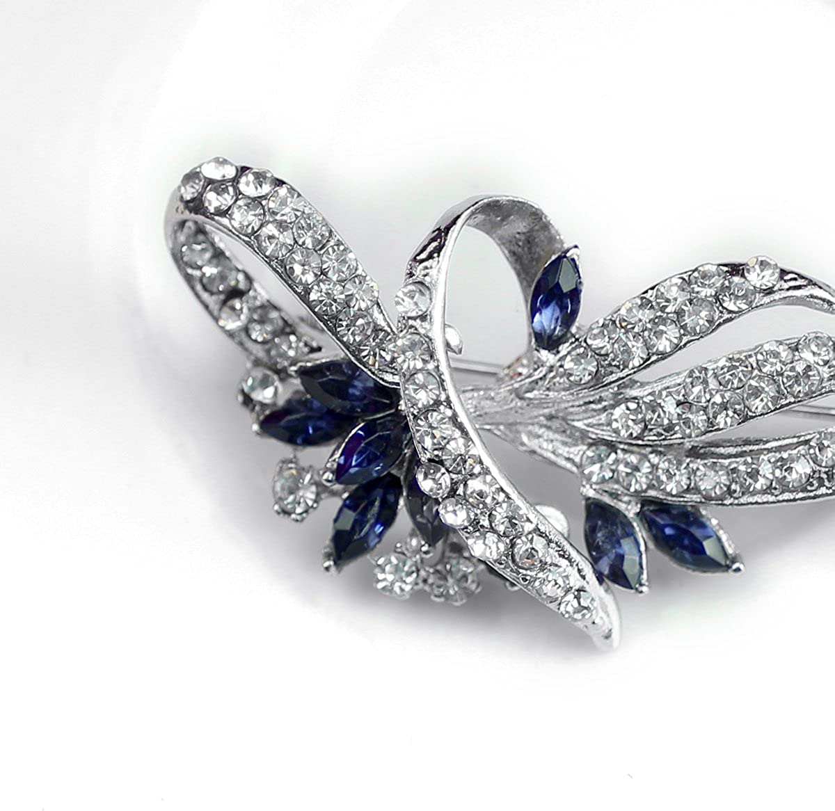 Merdia Created Crystal Brooch Fancy Vintage Style Flower Brooch Pin for Women, girls, ladies Blue color