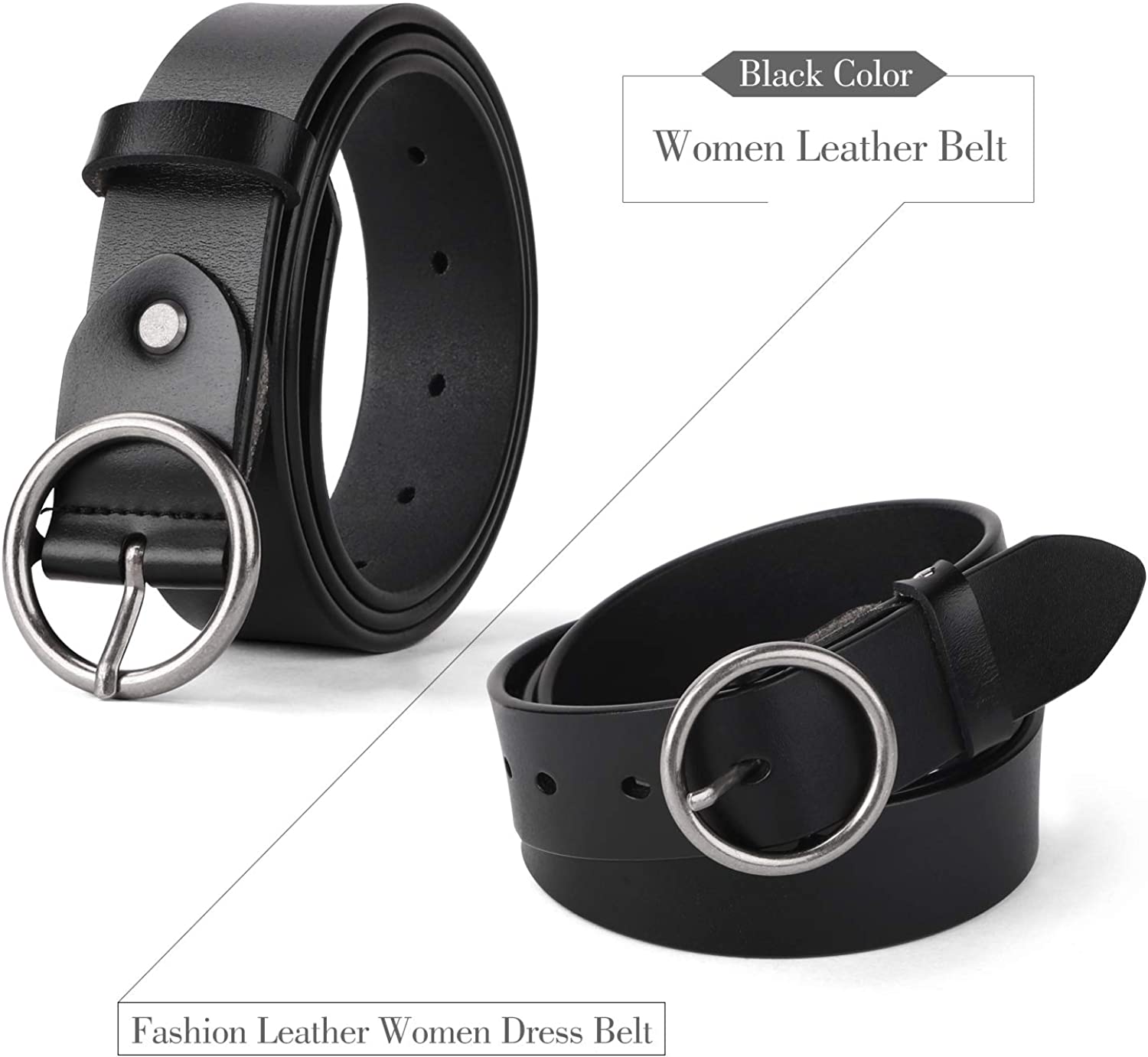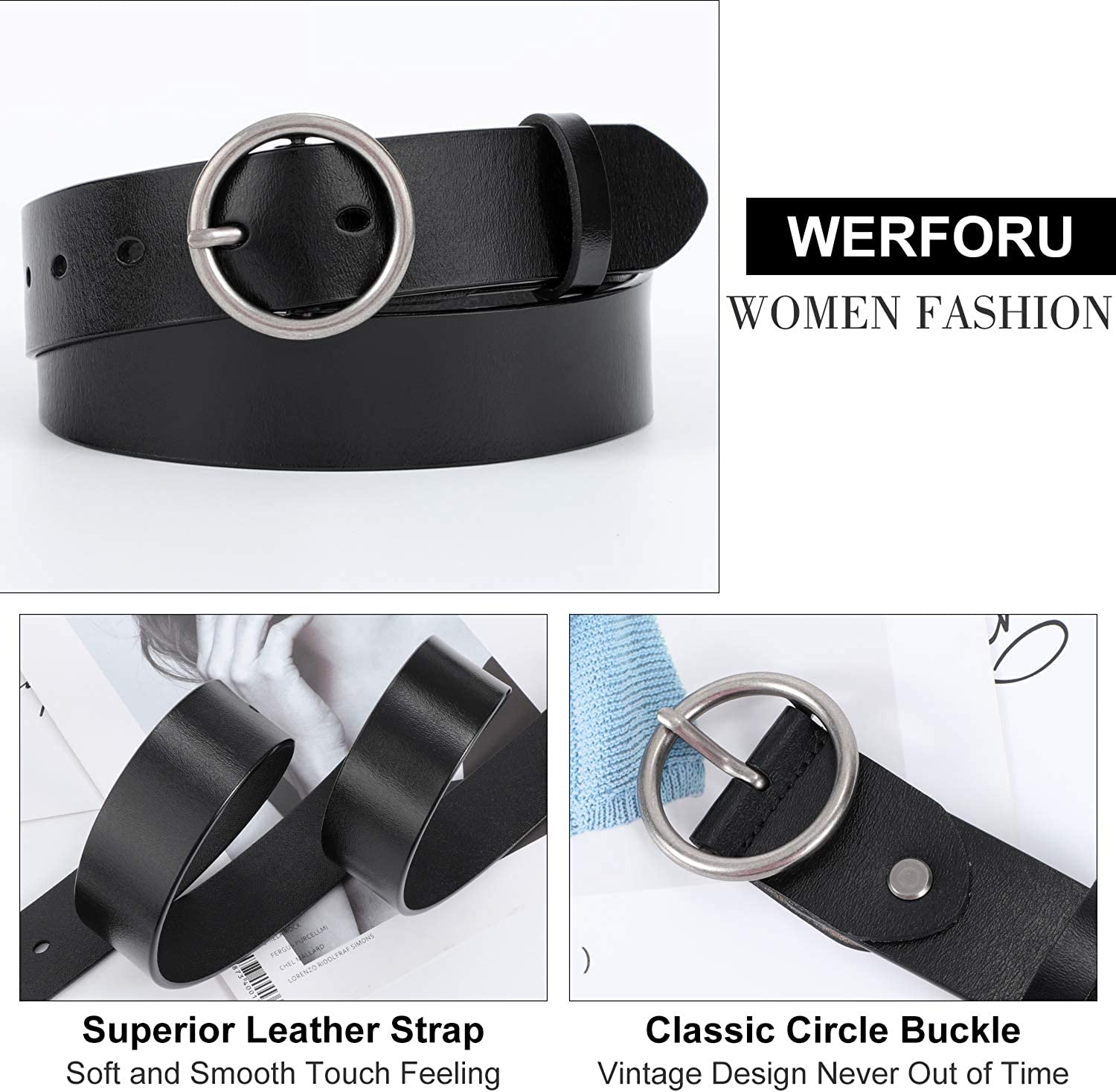 WERFORU Women Casual Dress Belt Fashion Leather Belt with O Ring Buckle for Jeans Pants