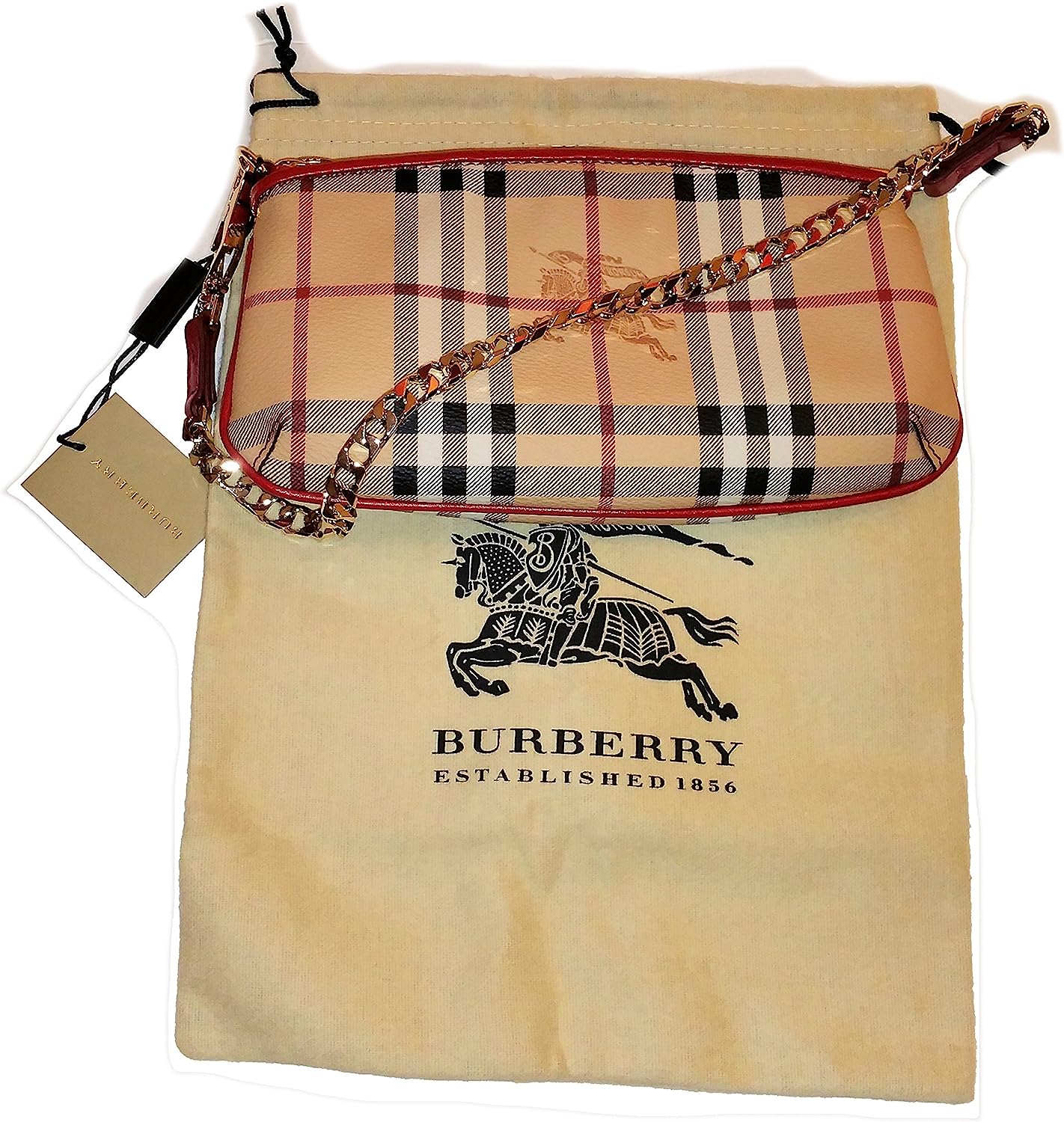 Burberry dust bag and security tag attached.
