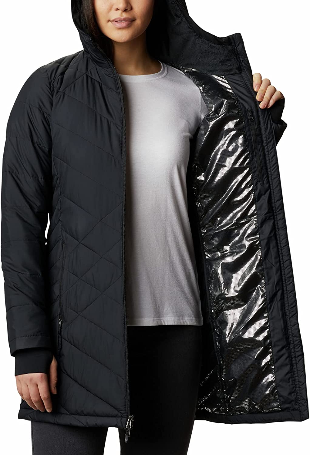 The Columbia Women's Heavenly Long Hooded Jacket combines stylish urban looks with technology to keep you warm and dry. Made for women, this great fall and winter jacket features a long silhouette with a modern fit and drop tail. Crafted of a water resistant shell, lined with Omni-HEAT reflective lining, along with a yummy plush fleece lined collar, quality assembly, construction, and stitching, the advanced technology infused into this jacket will instill a sense of confidence when the weather turns super blustery and cold. Unique to this jacket, the sleeves have built-in thumb holes and comfort cuffs to provide a sense of control and warmth to your arms and hands. The two-way main front zipper provides up/down options for flexibility of movement and warmth control when needed, while the zippered side pockets keep your small items secure (including your hands when the outdoors get extra cold). The water resistant fabric keeps you protected during unexpected downpours. This women's winter jacket is offered in multiple colors and sizes. Extended sizing available. Active and Regular Fit. To ensure the size you choose is right, utilize our sizing chart and the following measurement instructions: For the sleeves, start at the center back of your neck and measure across the shoulder and down to the sleeve. If you come up with a partial number, round up to the next even number. For the chest, measure at the fullest part of the chest, under the armpits and over the shoulder blades, keeping the tape measure firm and level.