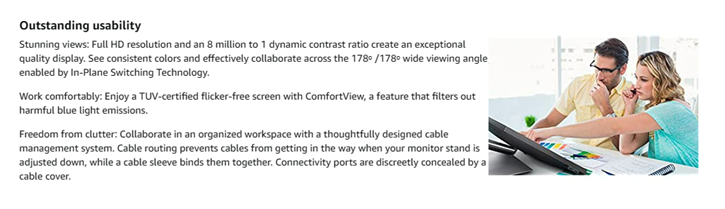 • Display Type Full HD, Maximum Resolution 1920 x 1080, Recommended Resolution 1920 x 1080, Viewing Angle 178 degree (H) / 178 degree (V), Pixel Pitch 0.275 millimeter, Display Colors 16.7 Million