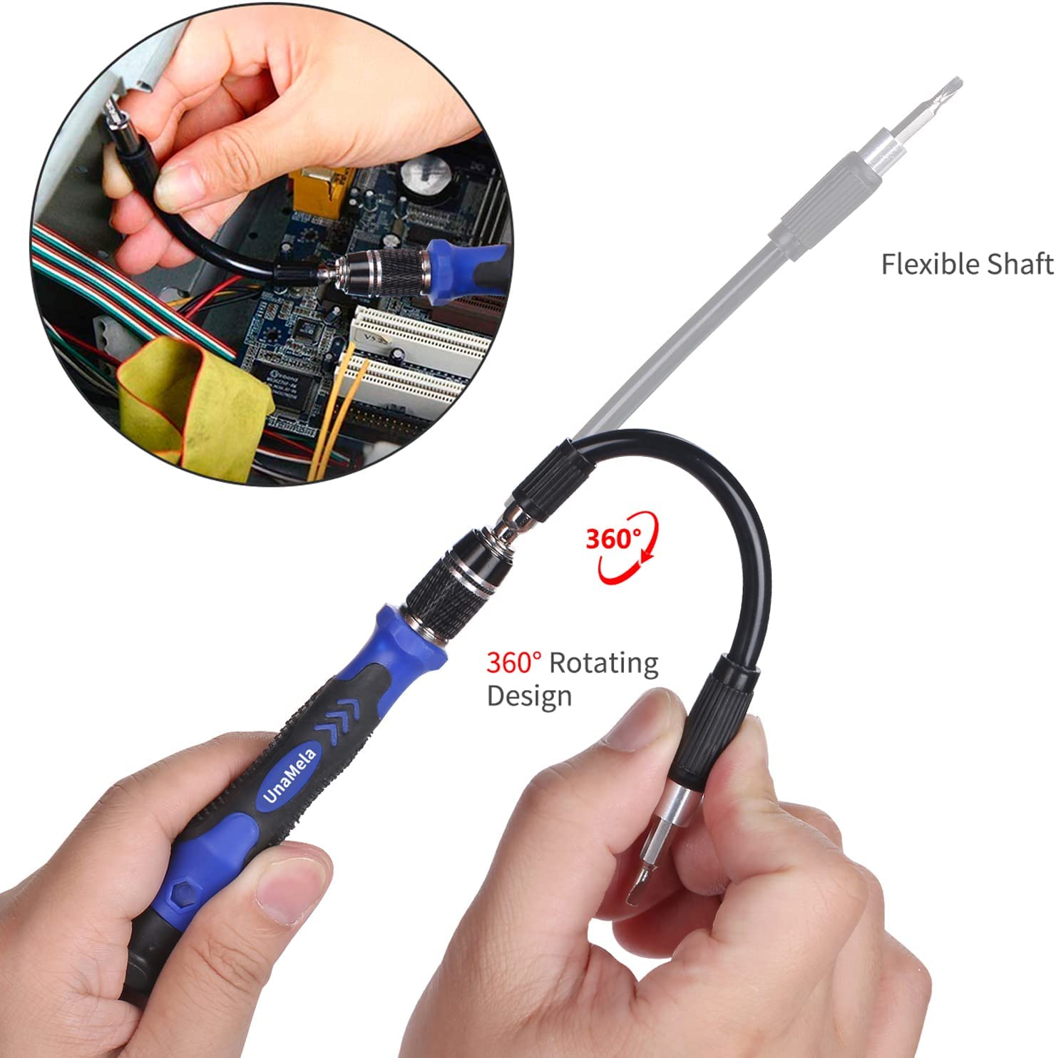 【Ergonomic Design】The handle of the screwdriver bit set adopts a multi-curve design, which conforms to the finger holding habits. Granular rubber wraps the ABS middle handle, high friction is not easy to slide. 360° rotating tail cover, stable operation with one hand, improve your maintenance efficiency. The screwdriver is magnetic, and it can firmly adsorbed the screw. With a 4mm precision drill bit, it fits closely with the screws of your electronic equipment and will not slip.
