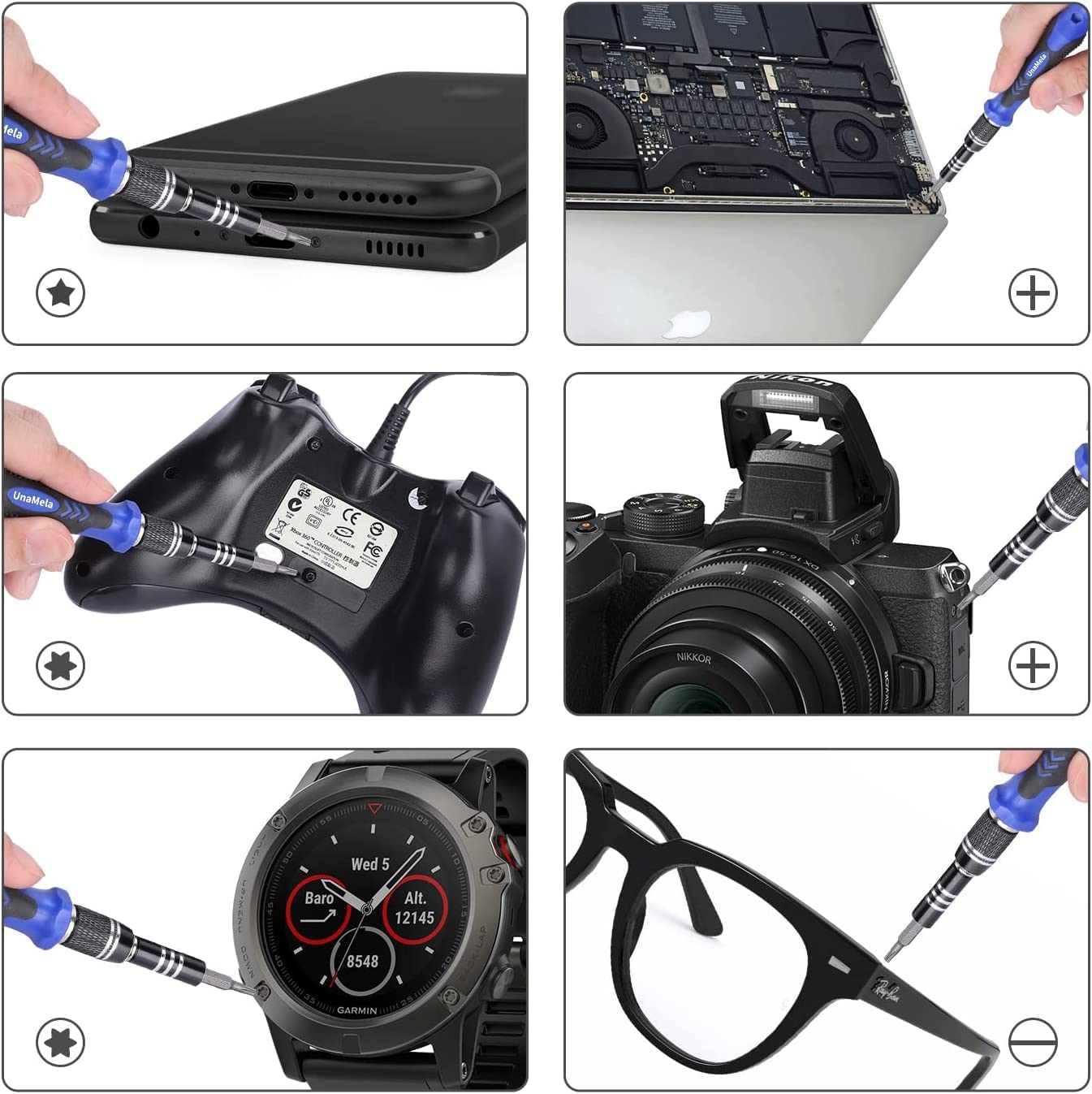 【Multiple Repair Functions】This precision screwdriver set includes complete bits for repairing electronic devices, 14 types, 56 bits (Phillips, Flat, Trox, Tri-Wing, Pentalobe, etc.). Use this tool to repair your computer, laptop, Camera, iPhone, Nintendo/Xbox/PS4 controller, SSD, air conditioner, TV, and so on. So you don't have to worry about damaged electronics at home.