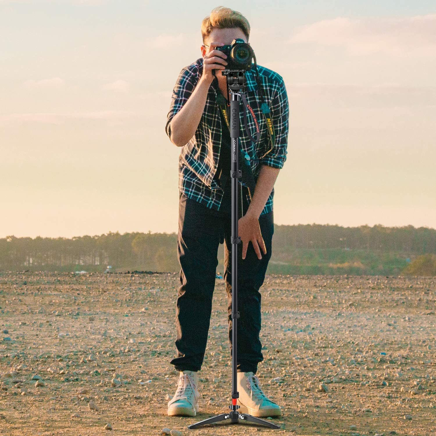 Monopod, COMAN KX3232 73.2 inch Professional Monopod Tripod Lightweight Aluminum Telescopic Camera Monopod with feet and Pan Tilt Fluid Head for DSLR Video Cameras
