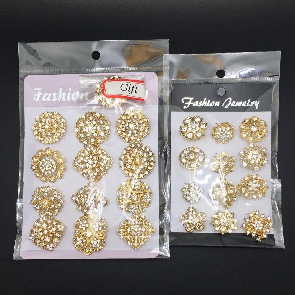 Lot 24pc Clear Rhinestone Crystal Flower Brooches Pins