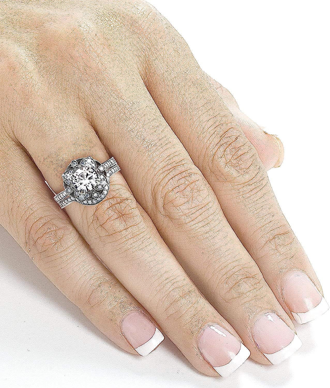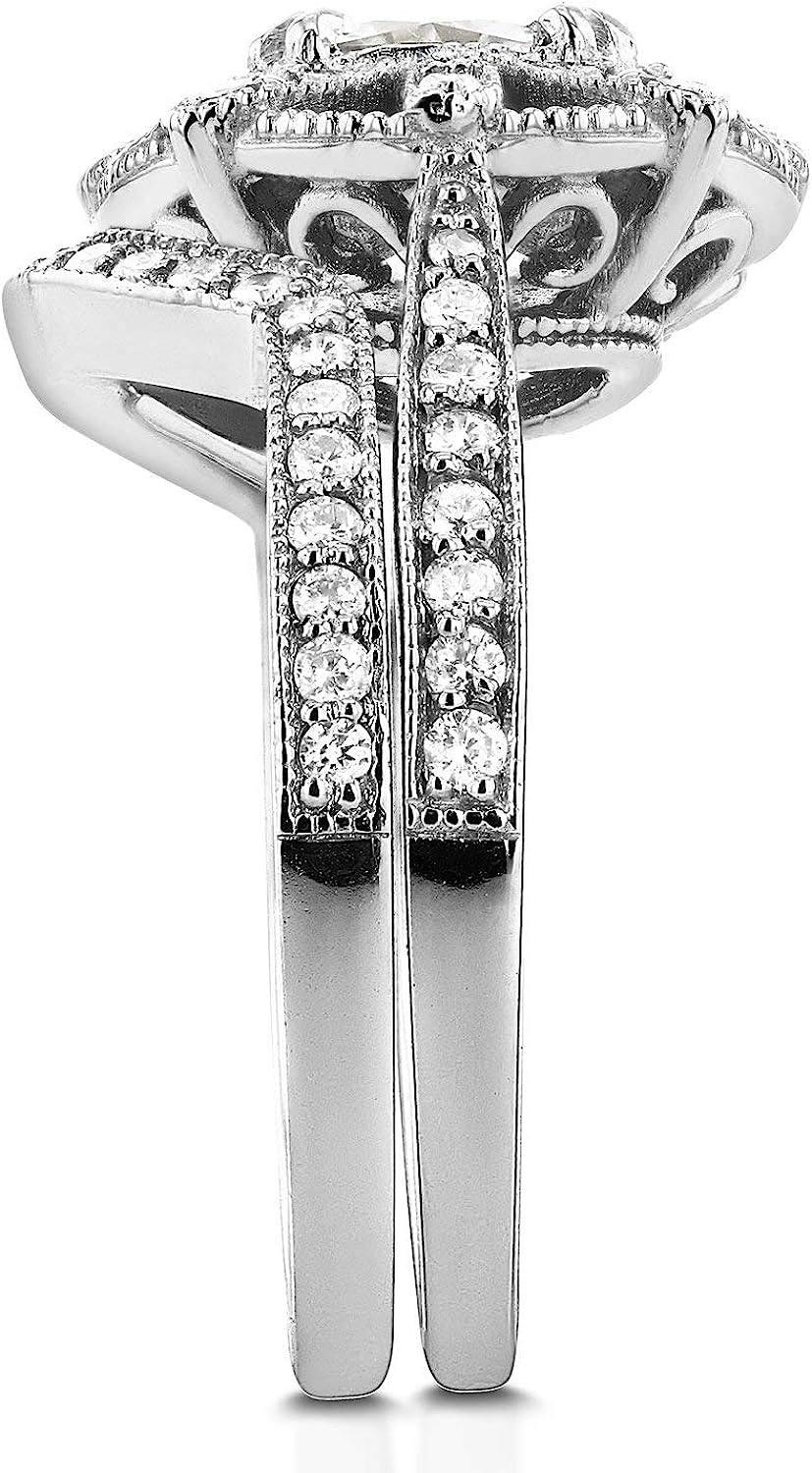 Kobelli Antique Style Floral Diamond Bridal Set 1 1/2 CTW in 14k White Gold
