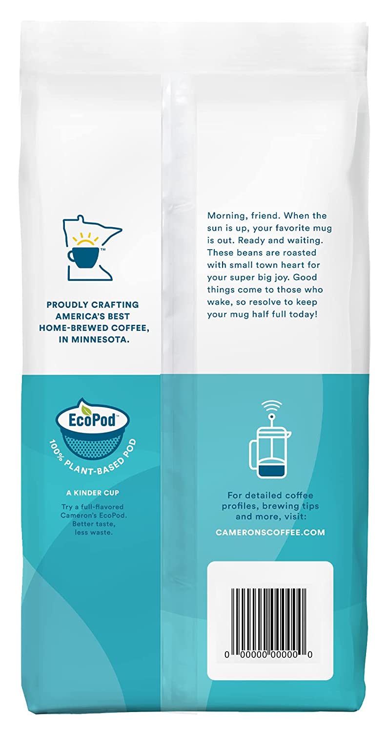 • POSITIVELY FOCUSED: From roasting in small batches to reducing water consumption, Cameron’s Coffee is committed to making every day brighter; Creating positive change means caring about our coffee, farmers and the environment