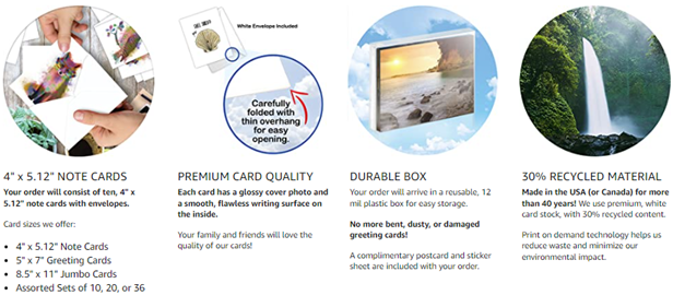 • SOCIALLY RESPONSIBLE - Keeping US jobs at home, our products are Made in the USA (and Canada) for over 40 years. We use thick, white, glossy cardstock, w/ 30% recycled content (no papyrus, naturally). We work to minimize environmental impact!